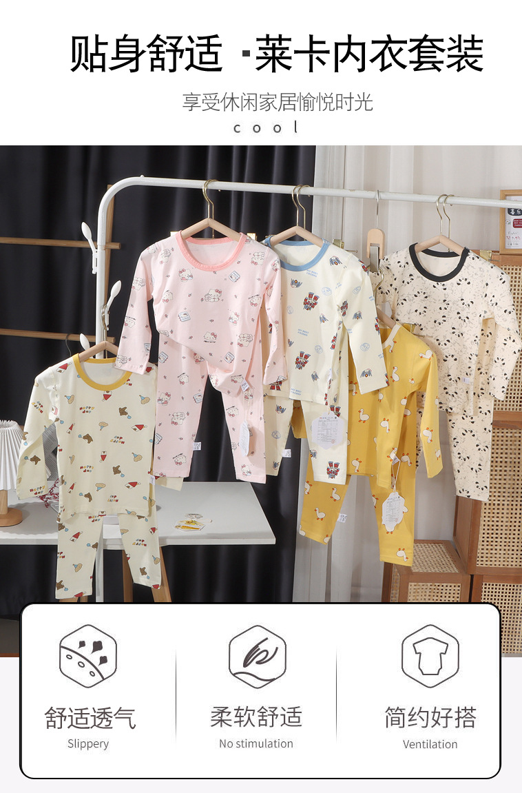 어린이 라이크라 홈 의류 클래스 면화 소녀의 뼈없는 가을 옷과 바지 세트 소녀 만화 잠옷스토어 가기