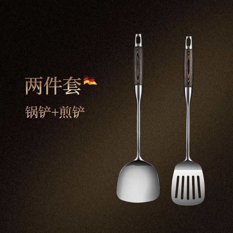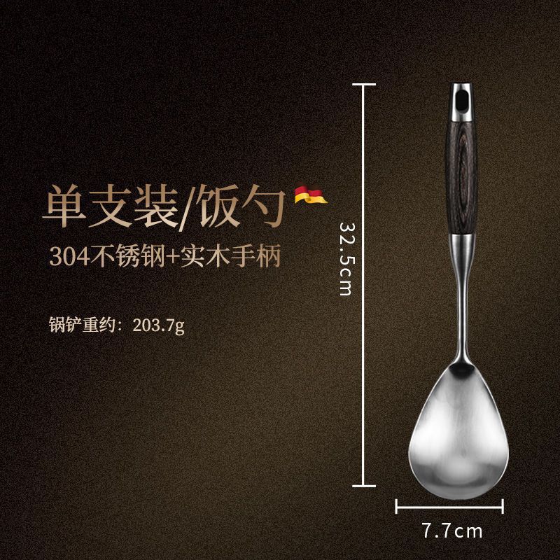 304不锈钢锅铲炒菜铲子汤勺加厚木铲子防烫漏勺煎铲家用厨具磊红