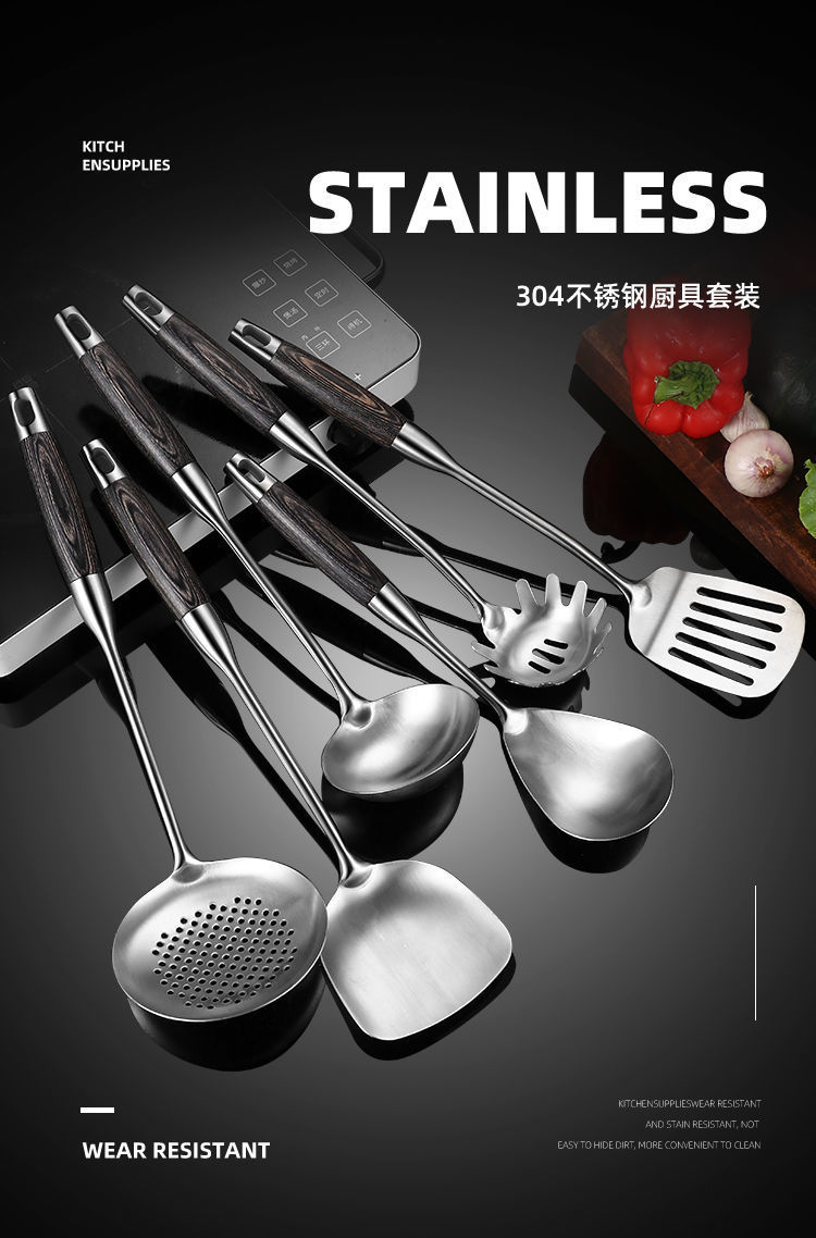 304不锈钢锅铲炒菜铲子汤勺加厚木铲子防烫漏勺煎铲家用厨具磊红스토어 가기