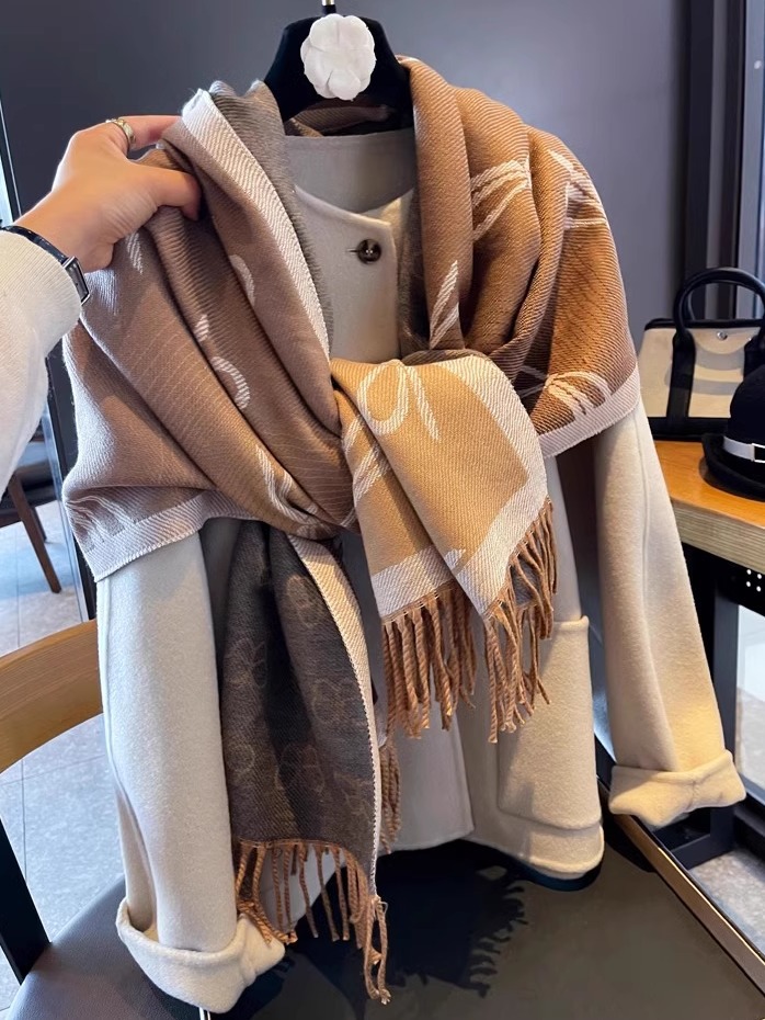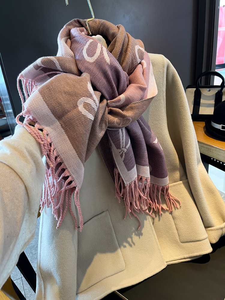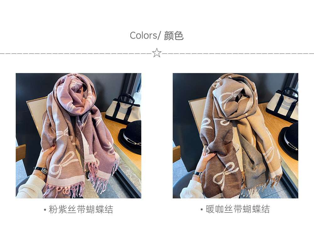 2024新款秋冬渐变氛围感韩版夹花蝴蝶结保暖加厚防寒高级披肩外搭