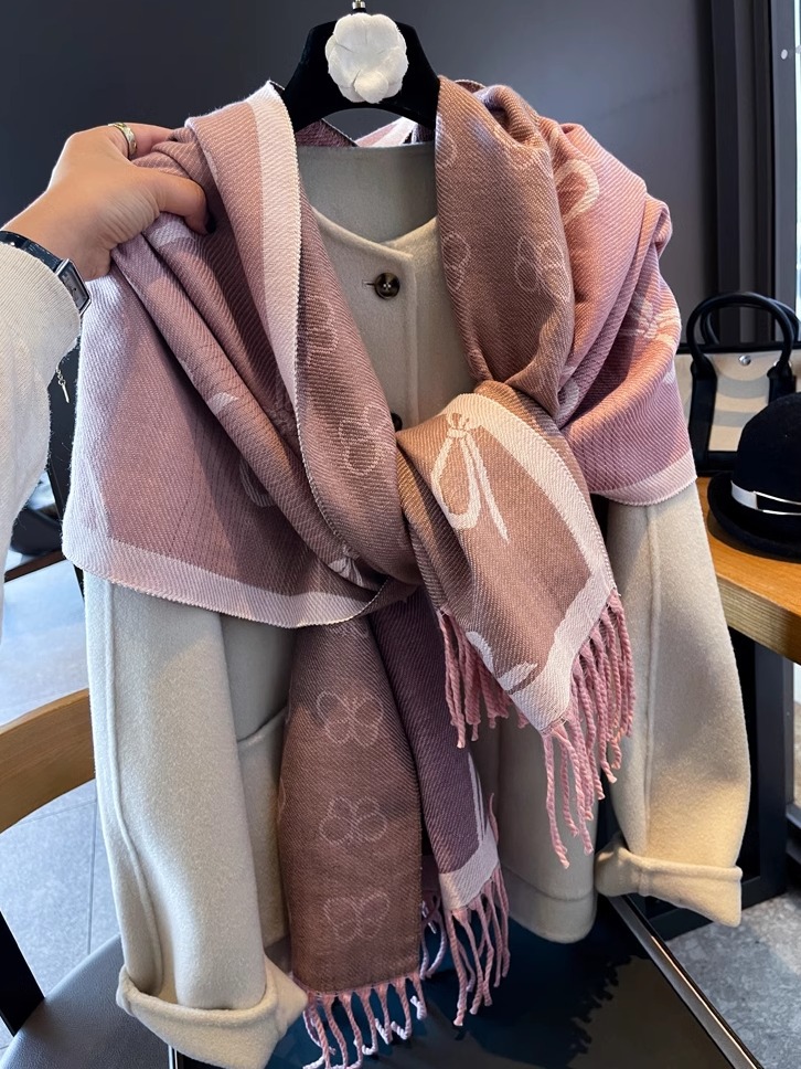 새로운 핑크 가을과 겨울 그라디언트 분위기 한국식 꽃 활 따뜻한 내추위 고급 목도리 외부스토어 가기
