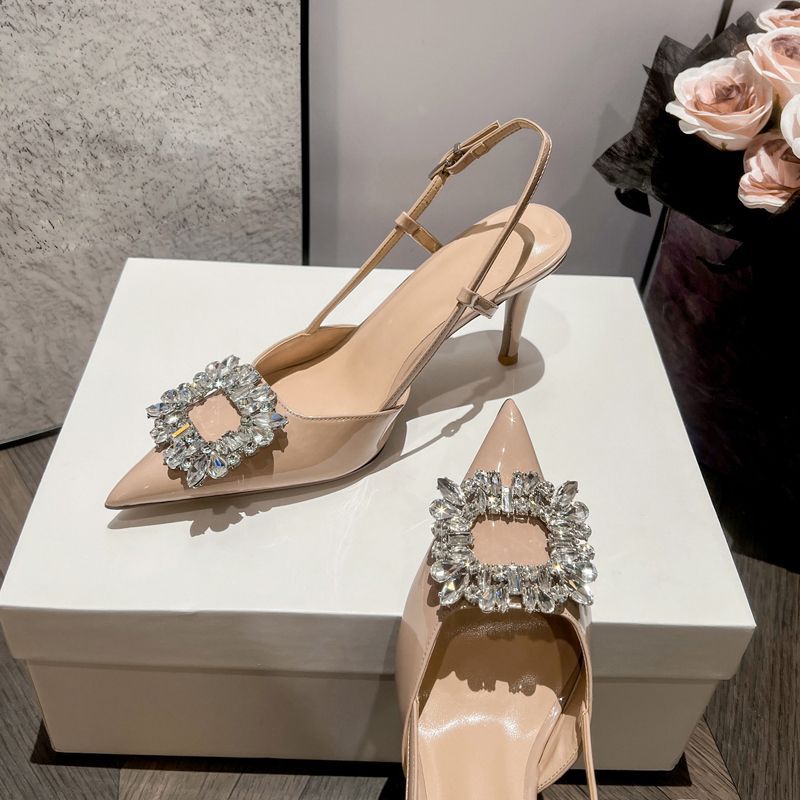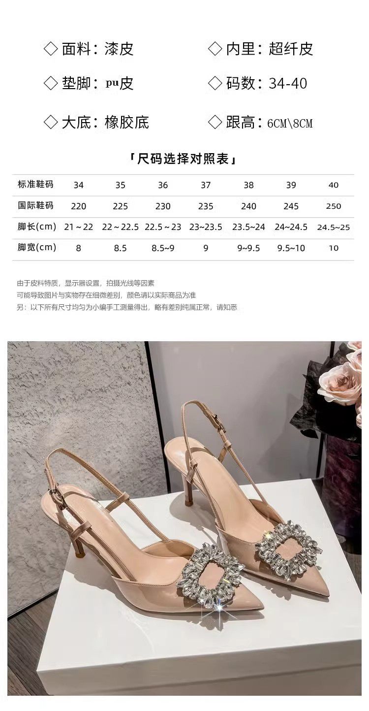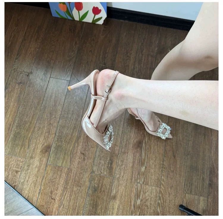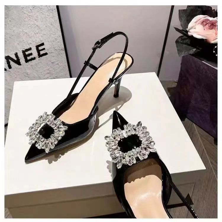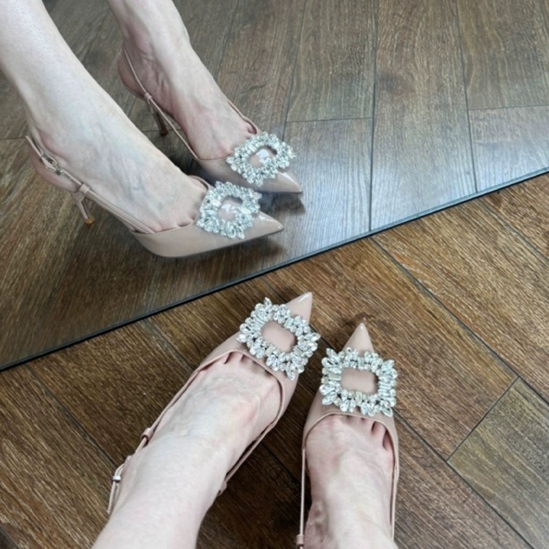 2024 새로운 모조 다이아몬드 뒤꿈치 샌들 여성 포인팅 모조 다이아몬드 백 빈 단어 요정 스타일의 기질 하이힐 여성스토어 가기