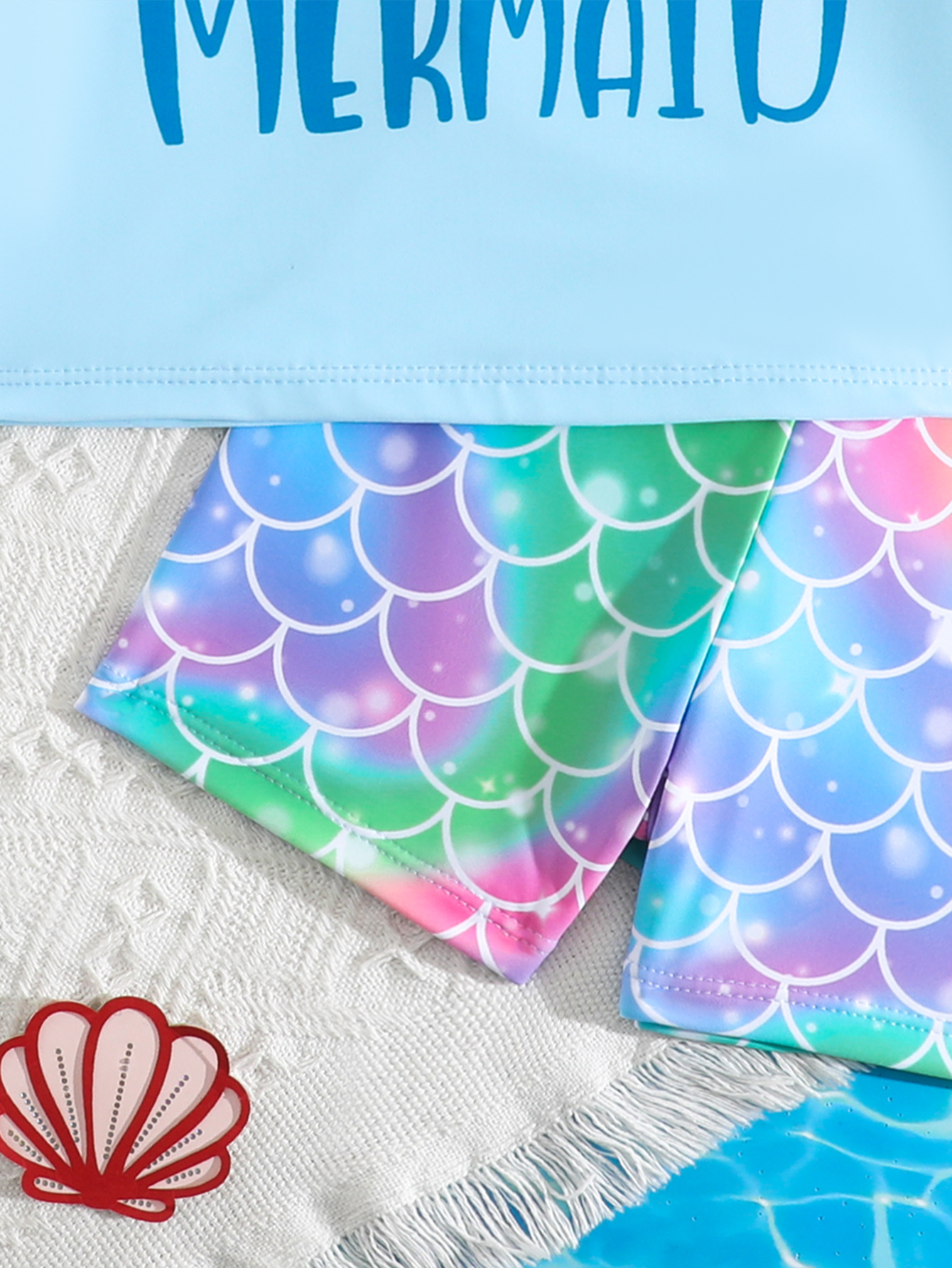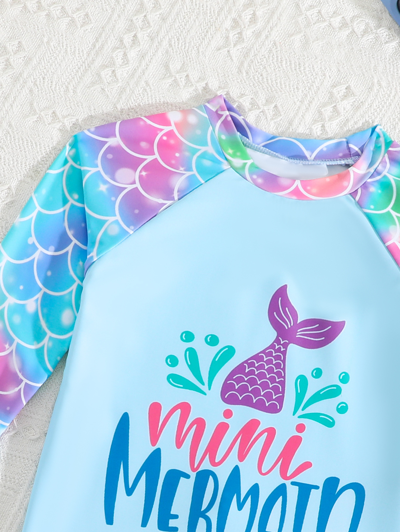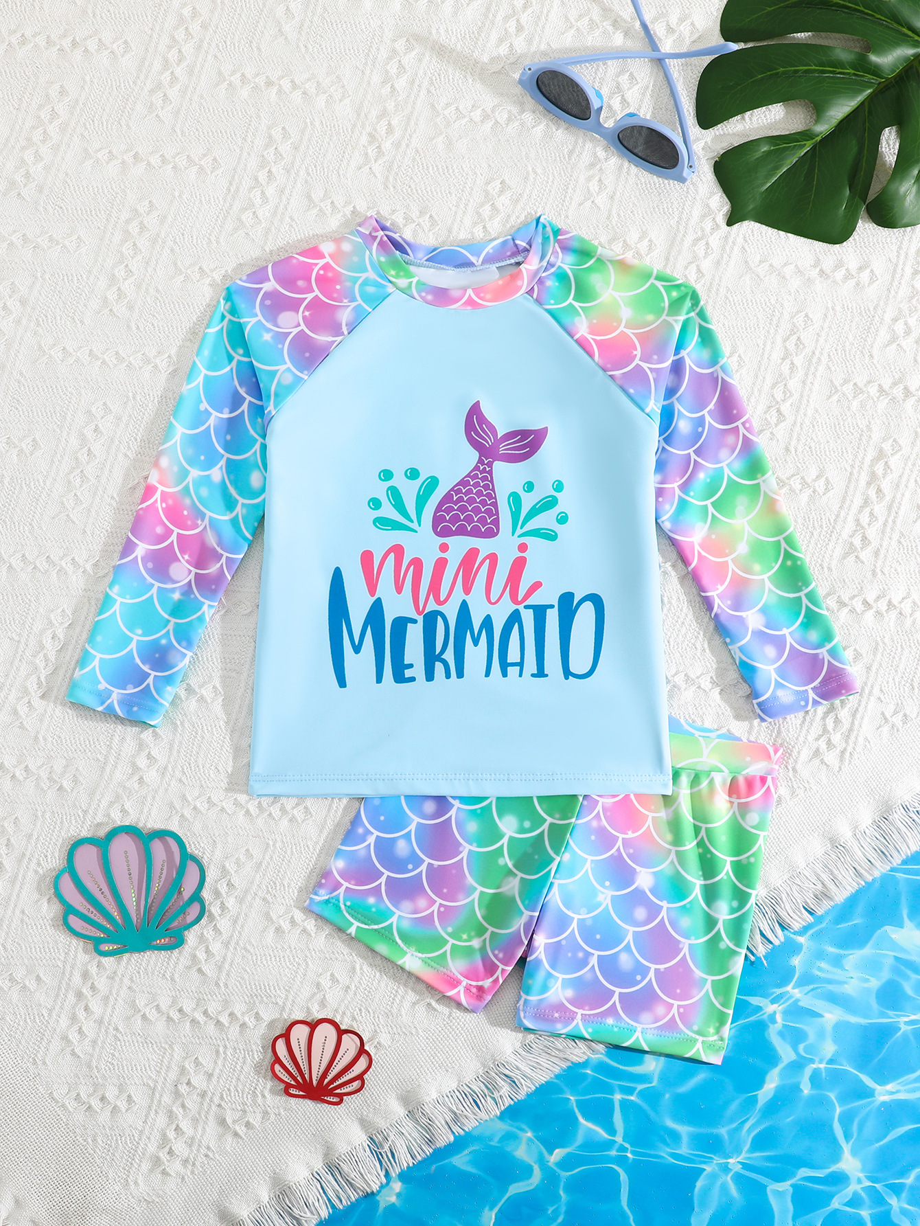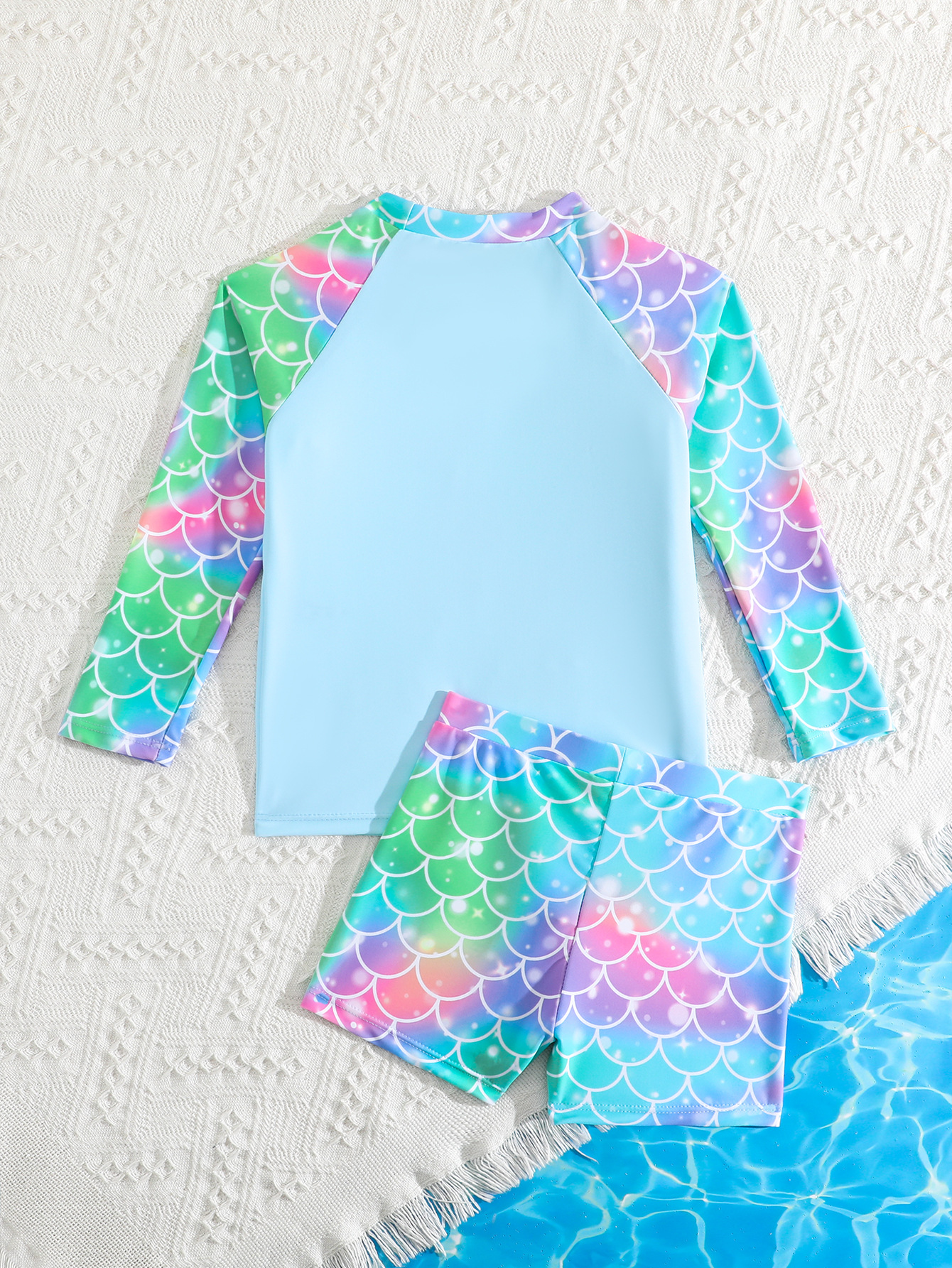 긴 소매 어린이 수영복 여성 온천 휴가 수영복 만화 귀여운 국경 물고기 규모 아마존 분할 수영복