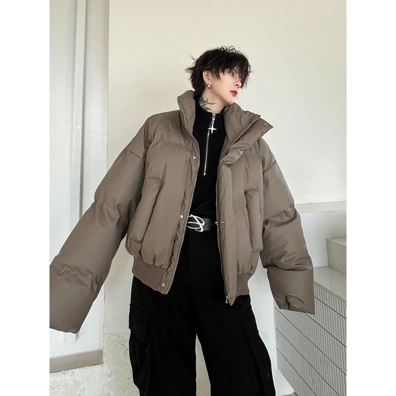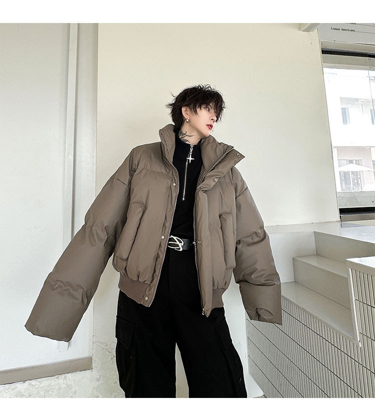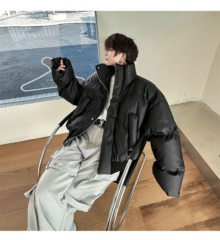 남성과 여성을위한 국경 간 겨울 의류 따뜻한 느슨한 가죽 코튼 패딩 코트 캐주얼 빵 의류 중량급 간단한 칼라 짧은면 패딩 코트