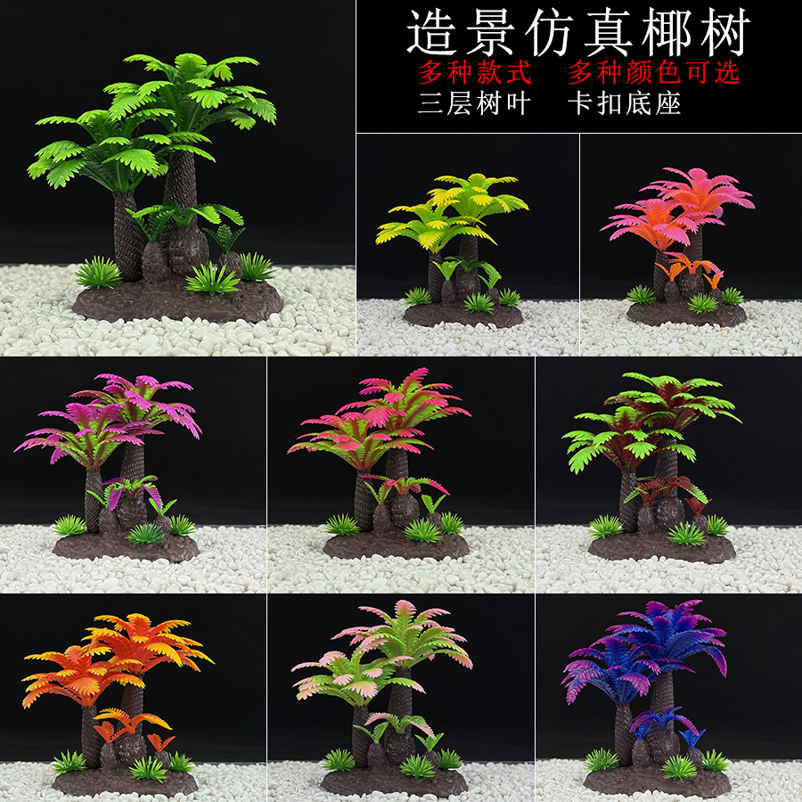 어항 조경 장식 플라스틱 모조 수초 식물 미니어처 코코넛 나무 장식품 수족관 용품 도매 분재