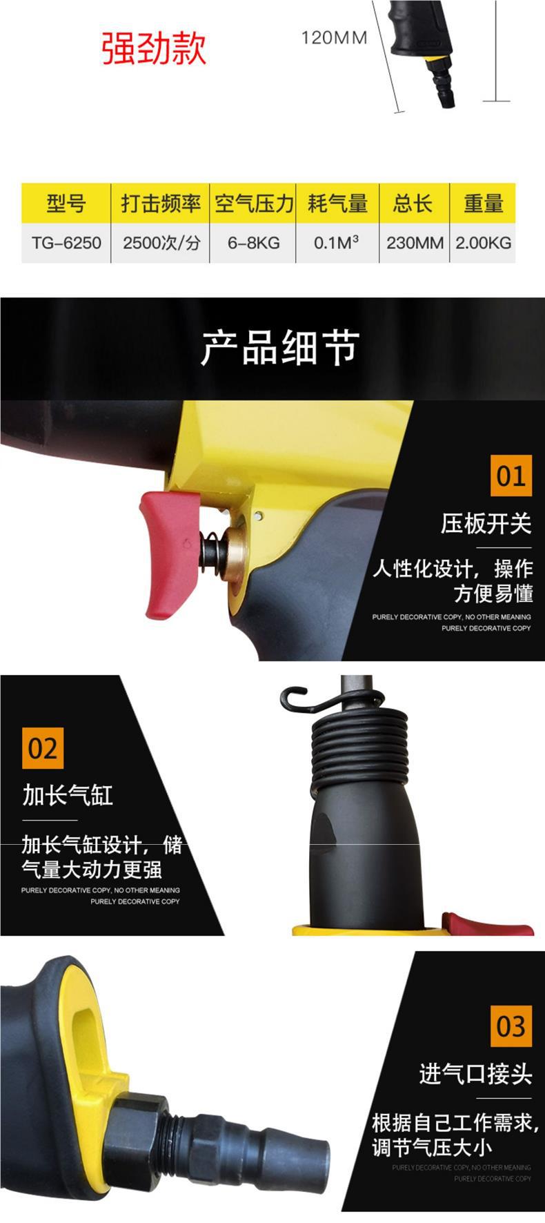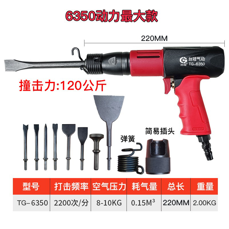 • 육각 대만 공기 삽(TG-2010) + 삽 머리 2개 + 스프링 2개, 충격력 45KG