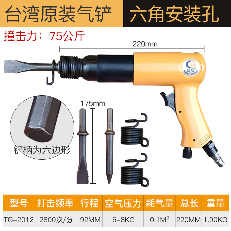 • 육각형 대만 공기 삽(TG-2012) + 삽 머리 2개 + 스프링 2개, 충격력 75KG
