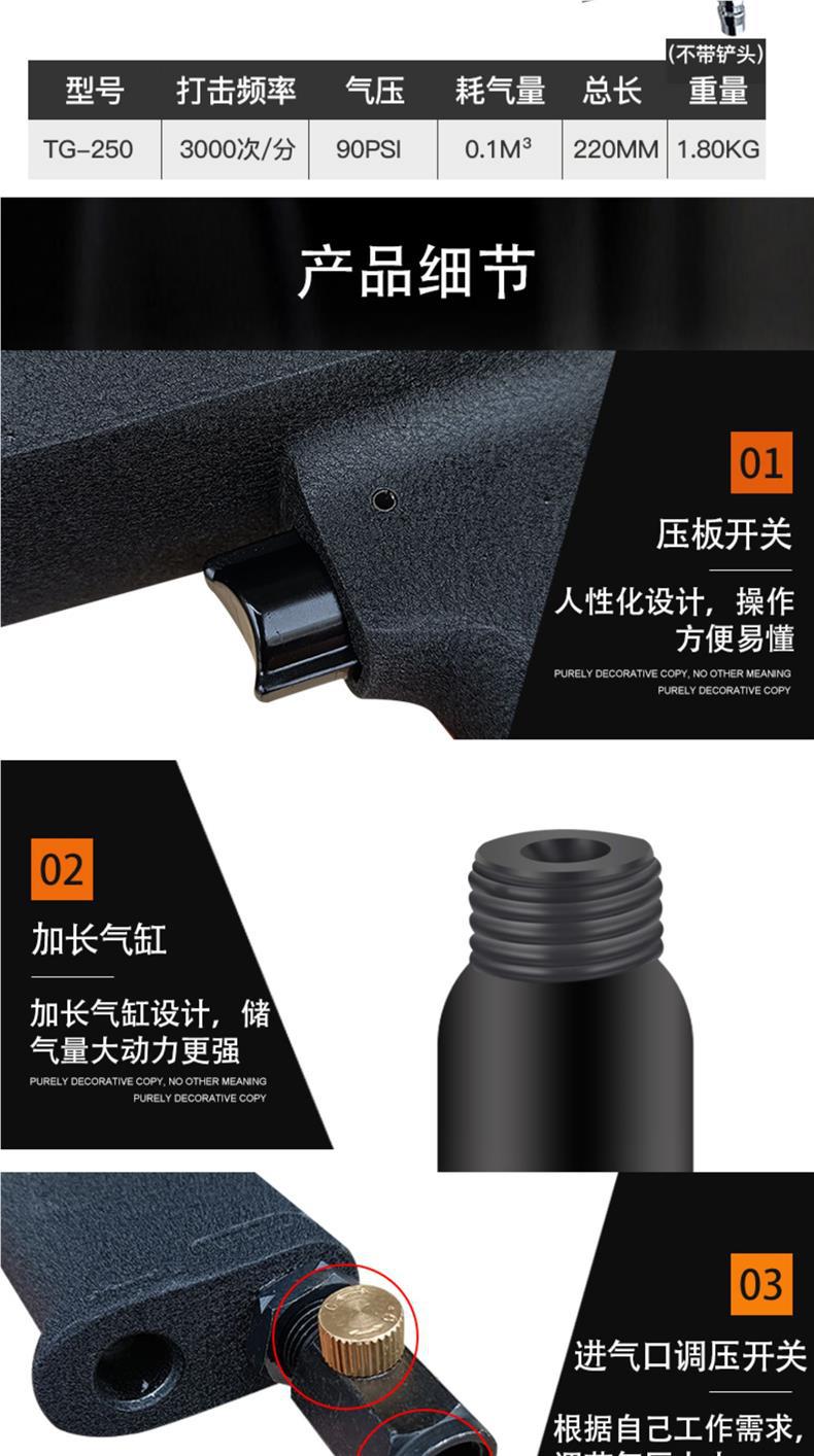 • 표준 버전 TG-250B(대형) 삽 머리, 스프링 4개, 충격력 70KG