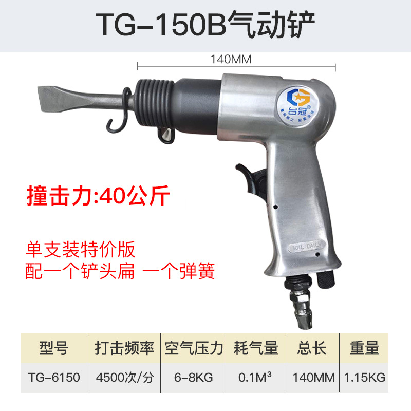 • 특별 버전 TG-150B에는 삽 머리(플랫) 1개와 스프링 1개가 포함되어 있으며 충격력은 40KG입니다.