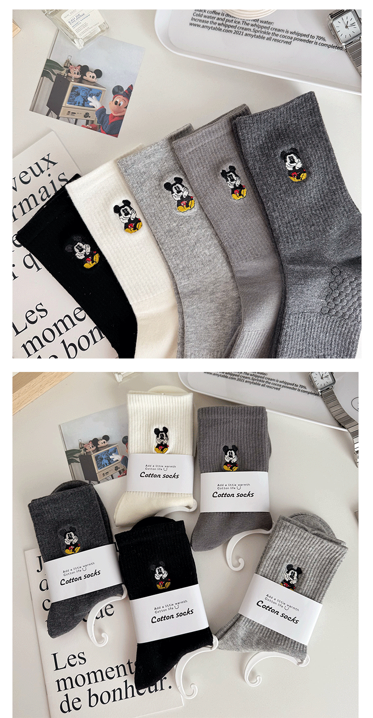 지 네 코끼리 양말 여성의 가을과 겨울 새 만화 자수 미키 마우스 중간 양말 편성 된 면화 학생 양말 유행 양말스토어 가기