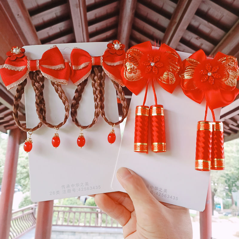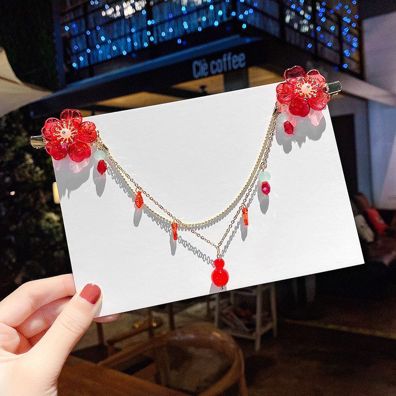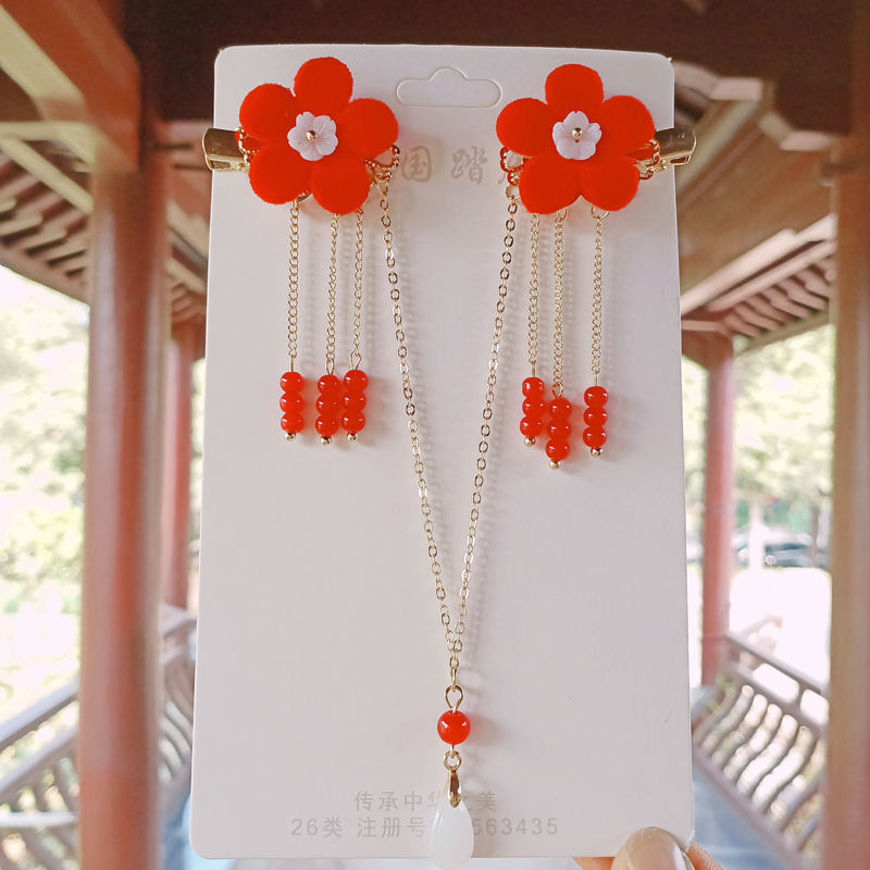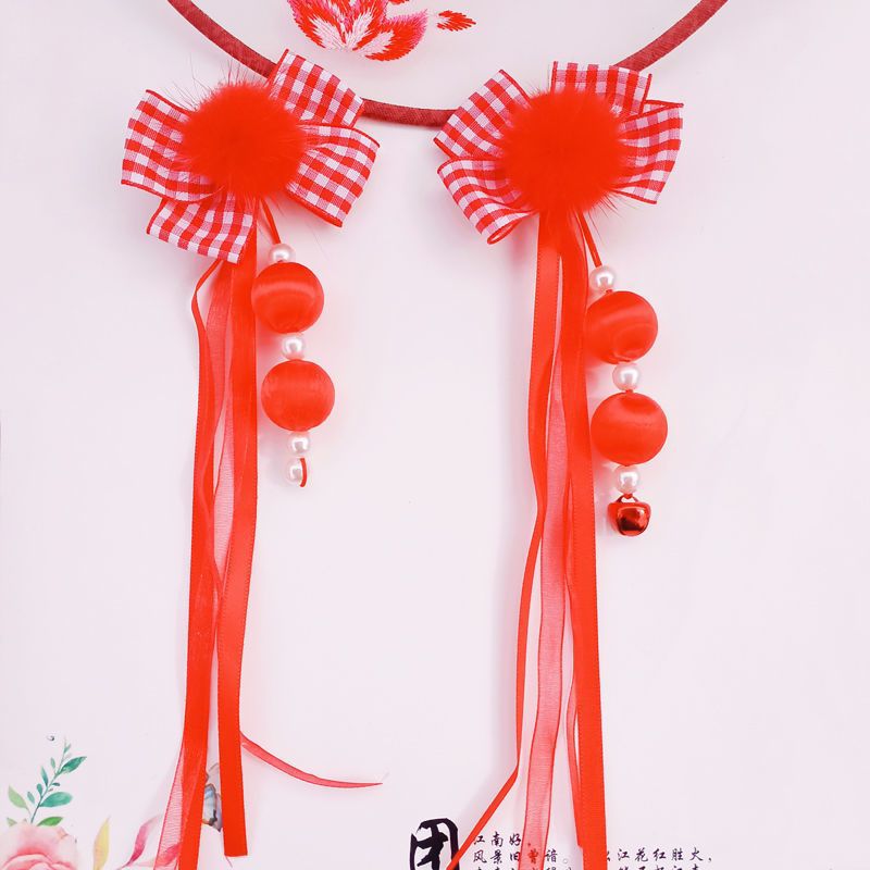 儿童古风超仙额头链女童汉服头饰公主发饰古代流苏发夹眉心姜武红