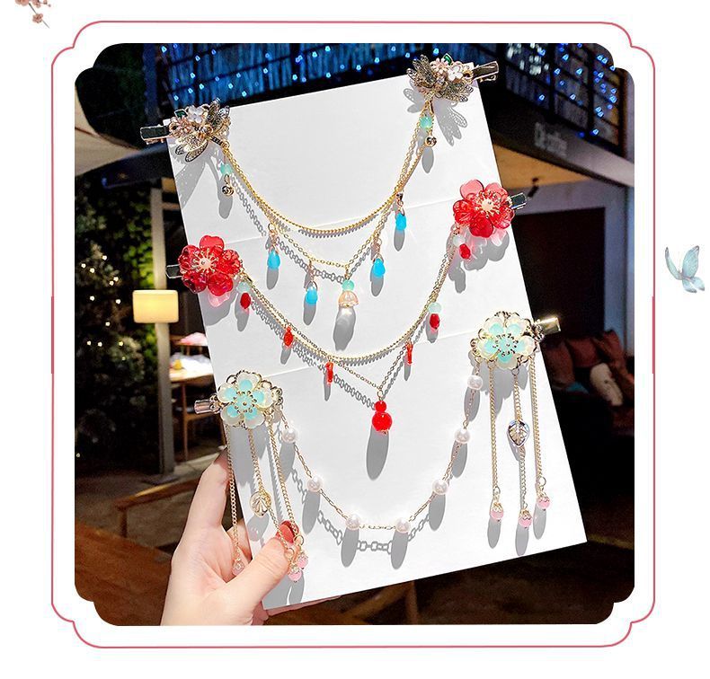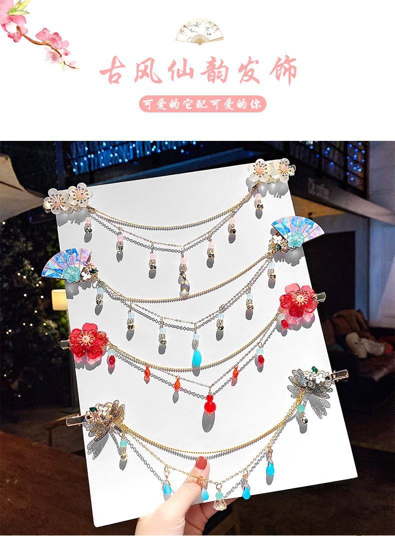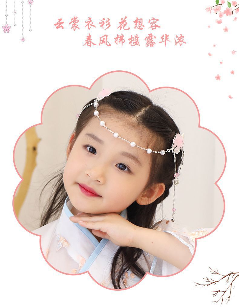 儿童古风超仙额头链女童汉服头饰公主发饰古代流苏发夹眉心姜武红스토어 가기
