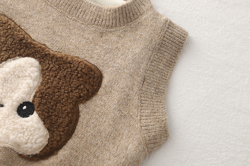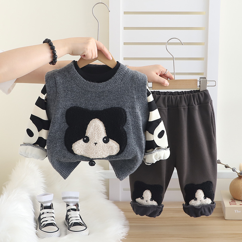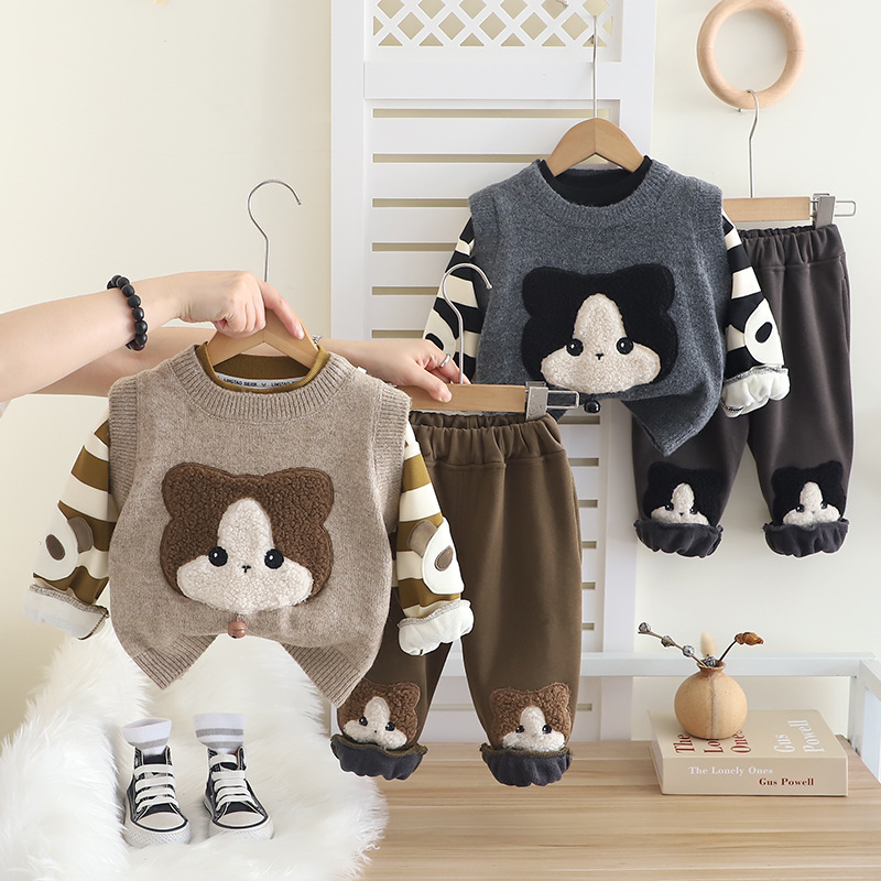 남학생 겨울 벨벳 세트 2024 새로운 서양식 아기 어린이 대학 스타일 다람쥐 스웨터 조끼 3 피스 세트스토어 가기