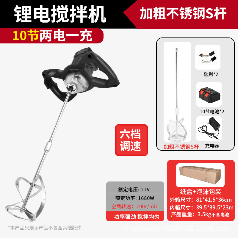 • 브러시리스 믹서 10셀 배터리 1개 충전 1개 + 두꺼운 스테인레스 스틸 S 믹싱로드
