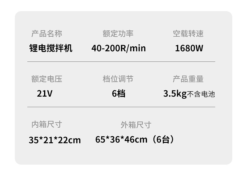 • 리튬 전기 믹서 브러시리스 모터 헤드(믹서 막대는 포함되지 않음)
