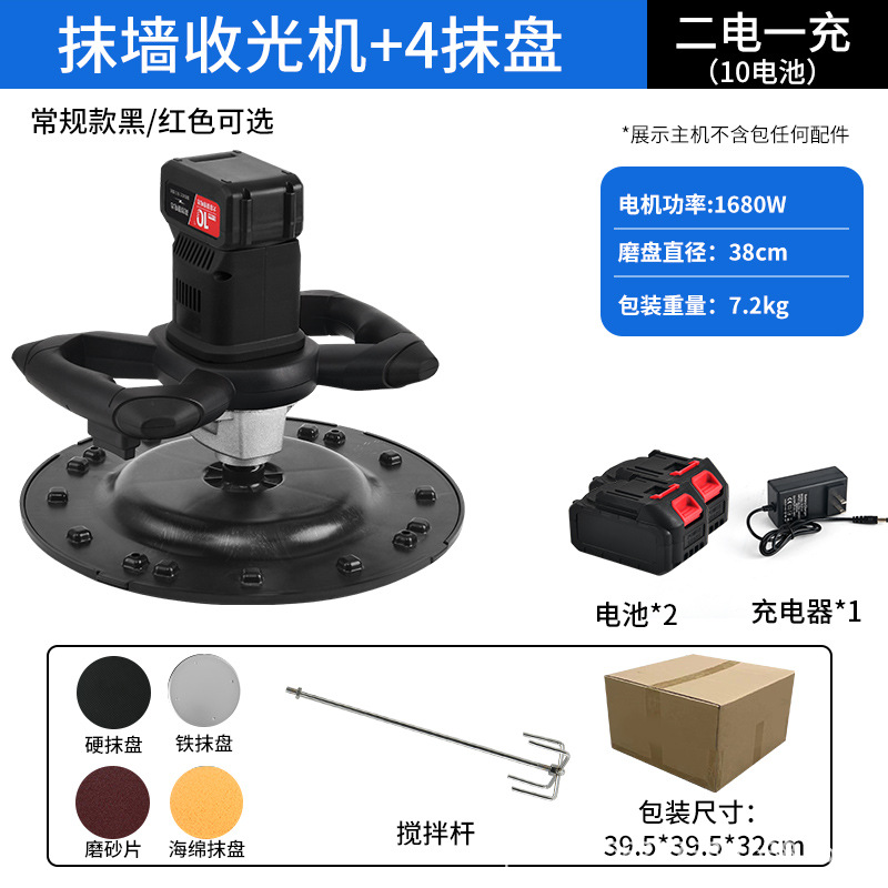 • 리튬 배터리 스티어링 휠 흙손 기계, 셀 10개, 배터리 2개, 충전 1개 + 하드 드라이브 + 철판 + 사포판 + 스펀지 디스크 + 교반 막대 1개