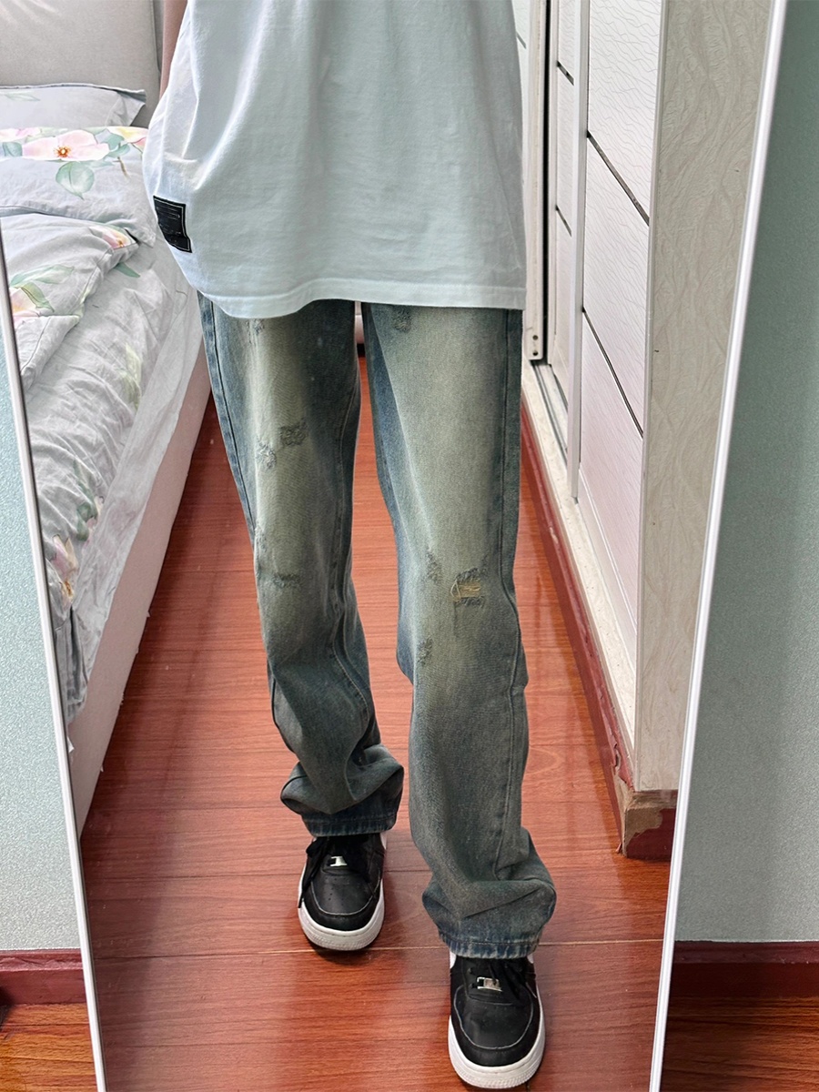 미국식 복고풍 긴 스트레이트 청바지 여성용 봄과 가을 높은 허리 슬리밍 넓은 다리 바지스토어 가기
