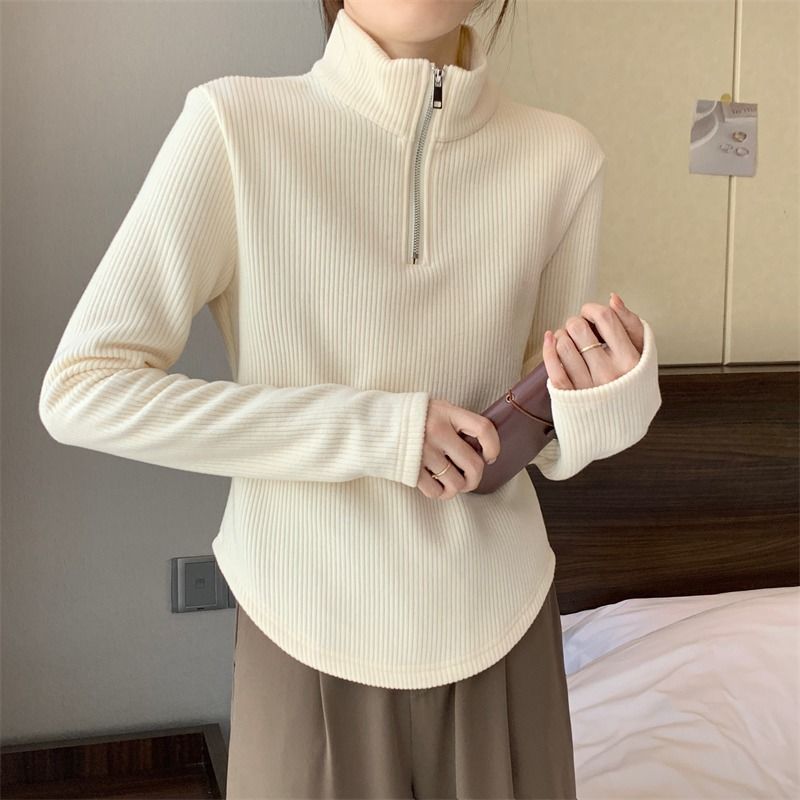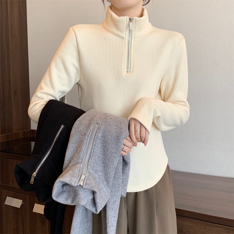 300kg 플러스 사이즈 여성 지방 m 기모 패딩 세미 하이 칼라 바닥 셔츠 새로운 가을과 겨울 불규칙한 따뜻한 코트스토어 가기