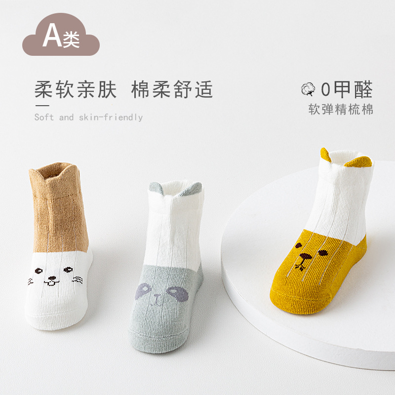 아기 양말 봄과 가을 아기 양말 신생아 0 6 개월 남성과 여성 어린이 단색면 양말스토어 가기