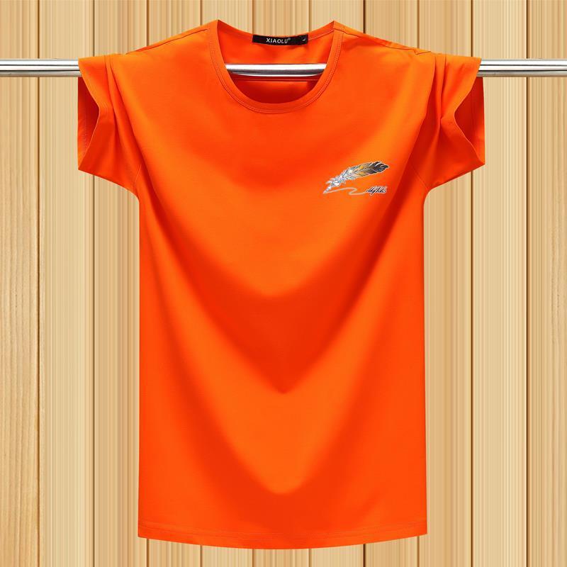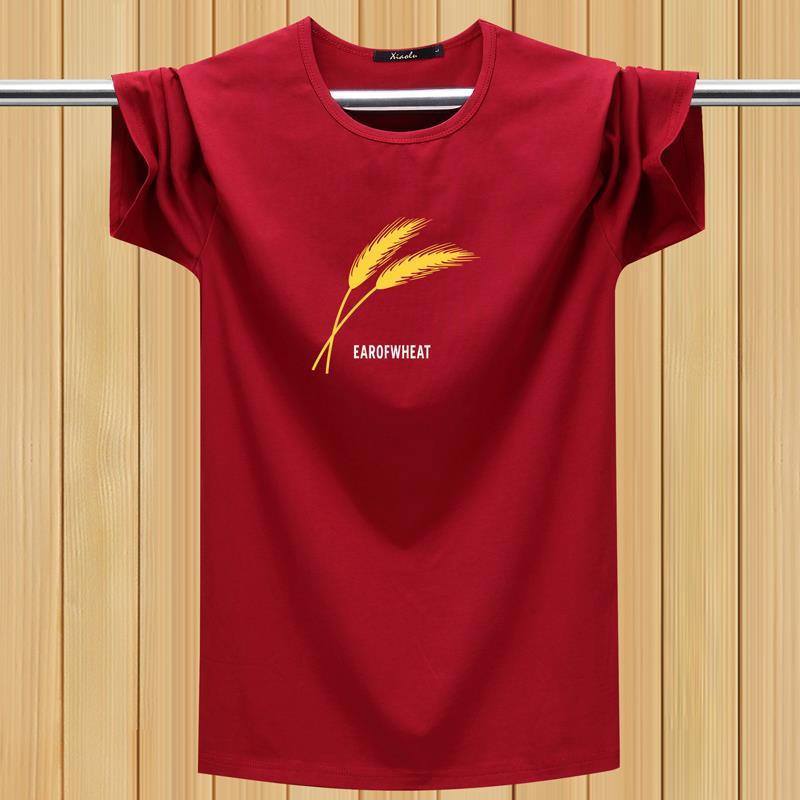 여름 염소 우유 실크 아이스 실크 티셔츠 반팔 남성 라운드 넥 패션 반팔 느슨한 스포츠 대형 뚱뚱한 남자 바디 레드스토어 가기