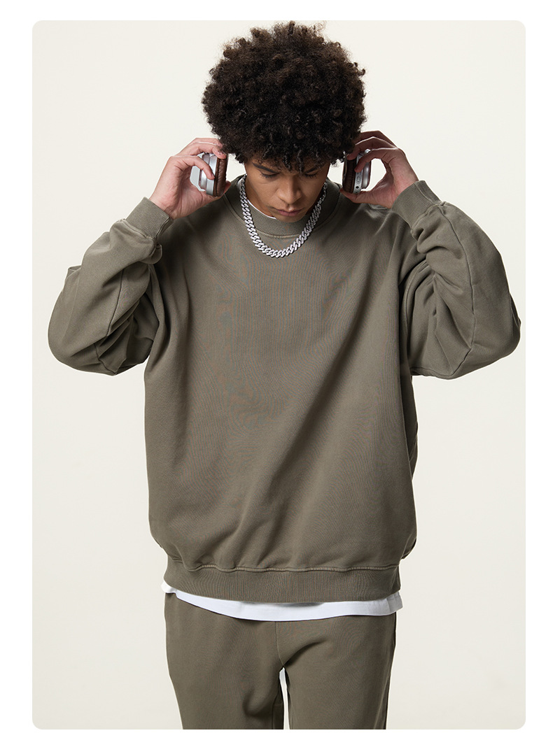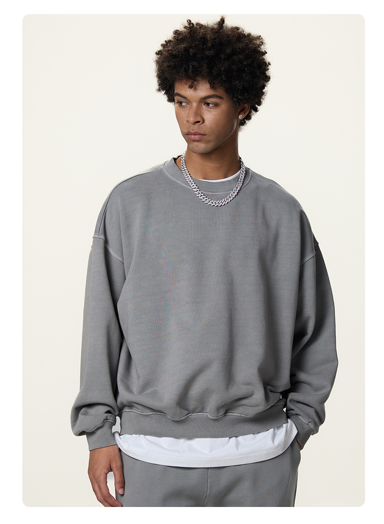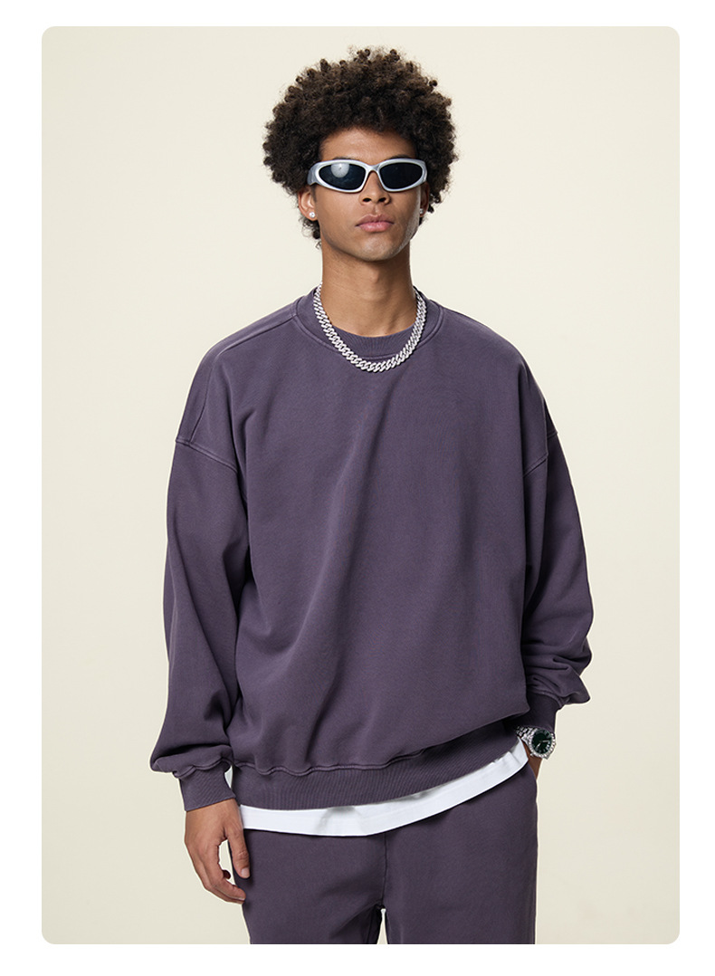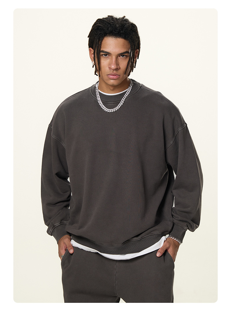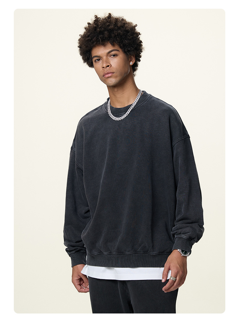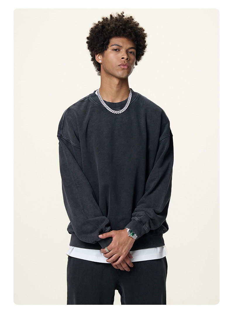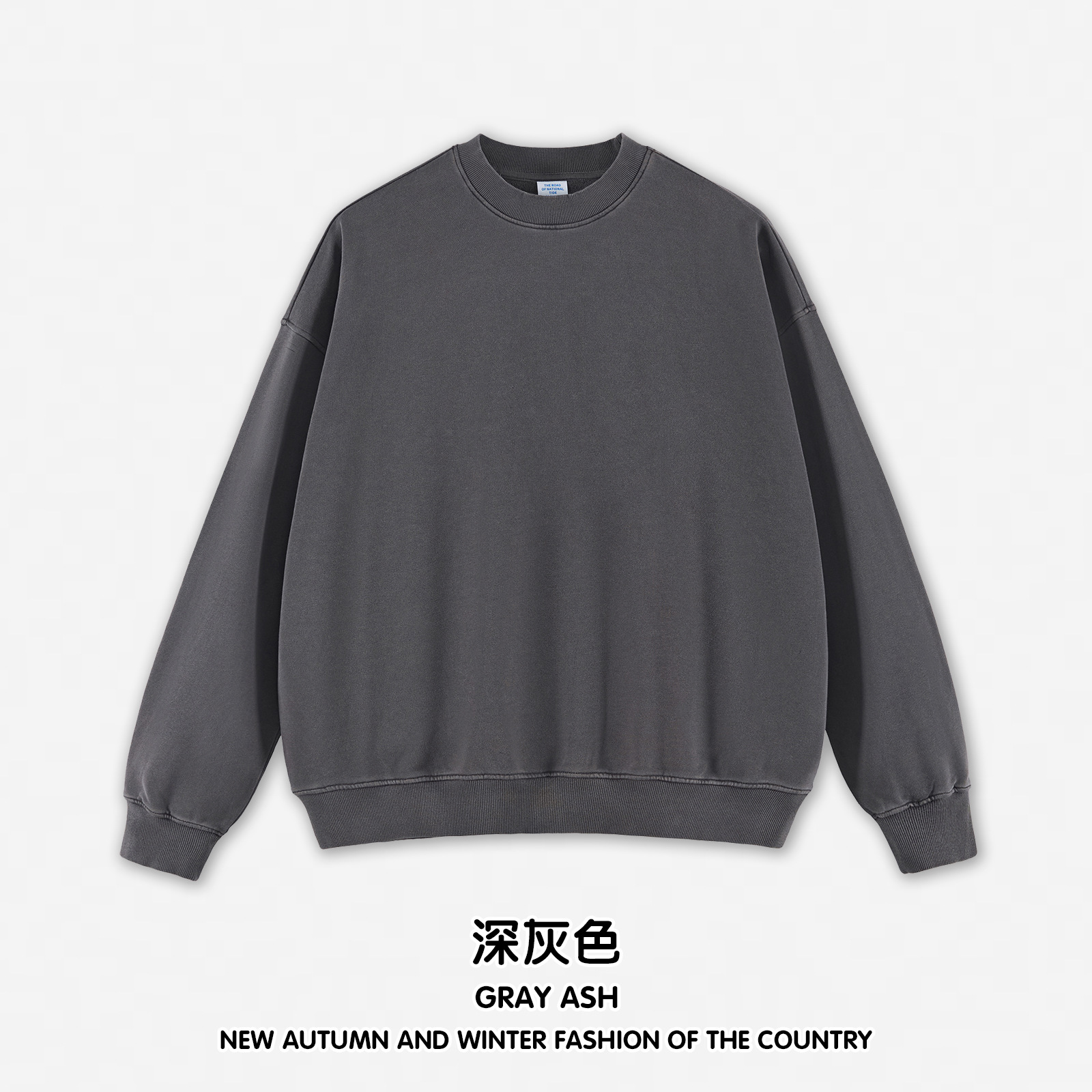 【클리어런스 500 이상 구매 시 100 할인】크로스보더 헤비웨이트 420G 워싱 테리 스웨트셔츠 라운드넥 스웨트셔츠 남성용스토어 가기