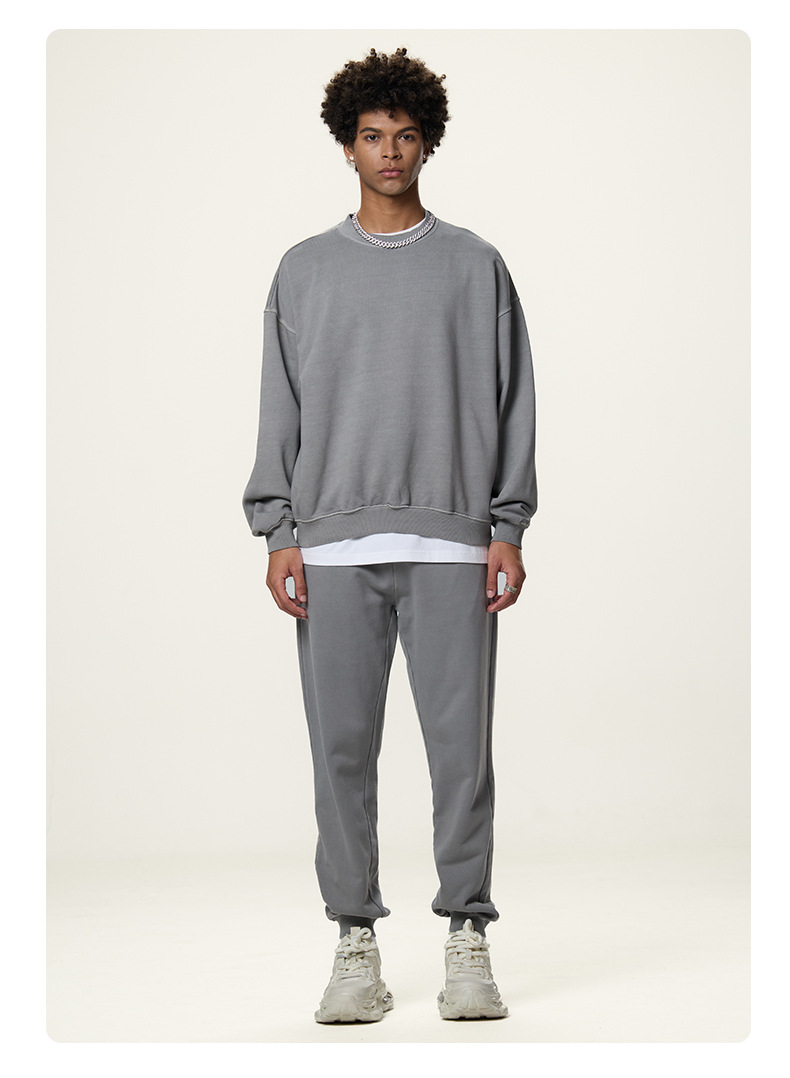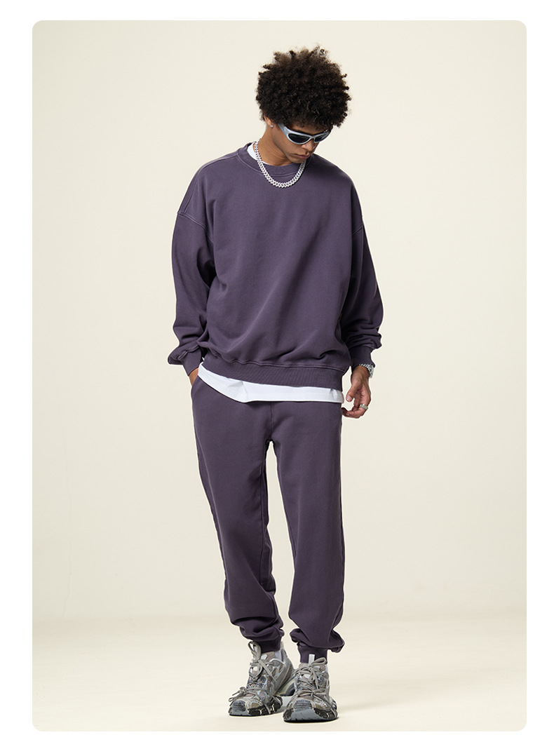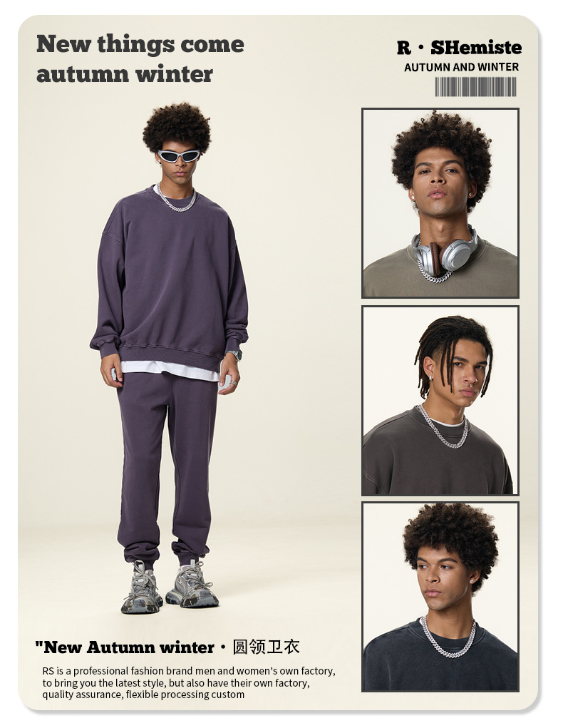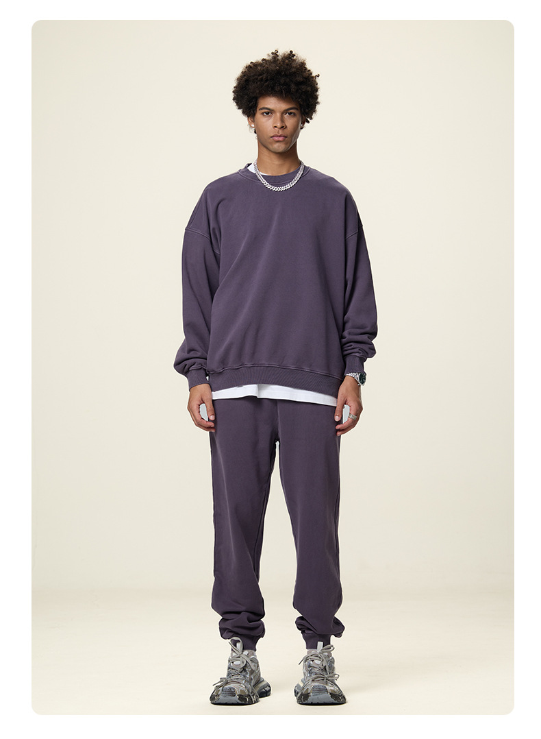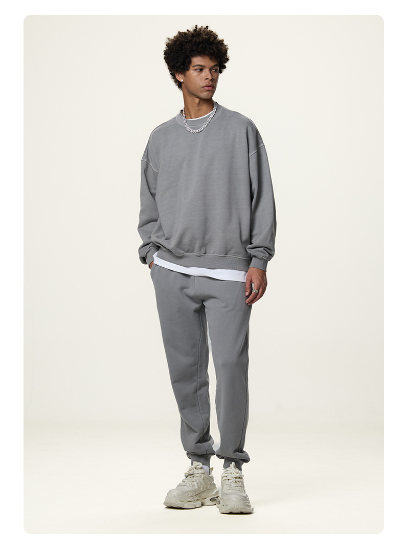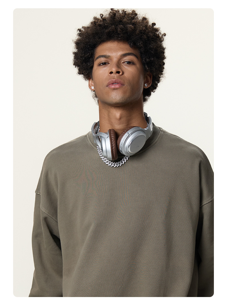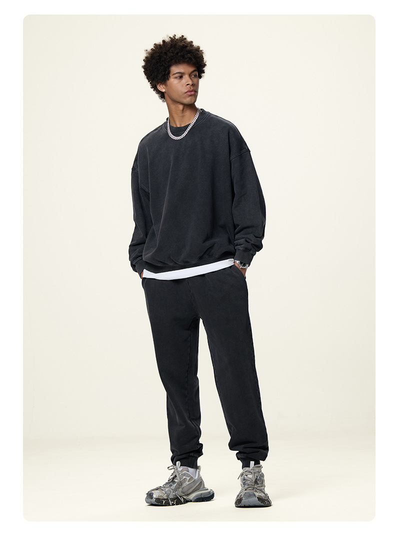 【클리어런스 500 이상 구매 시 100 할인】크로스보더 헤비웨이트 420G 워싱 테리 스웨트셔츠 라운드넥 스웨트셔츠 남성용스토어 가기