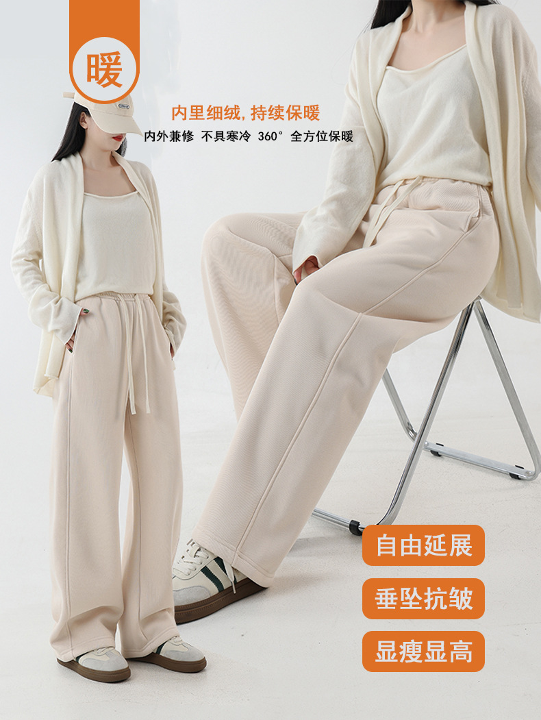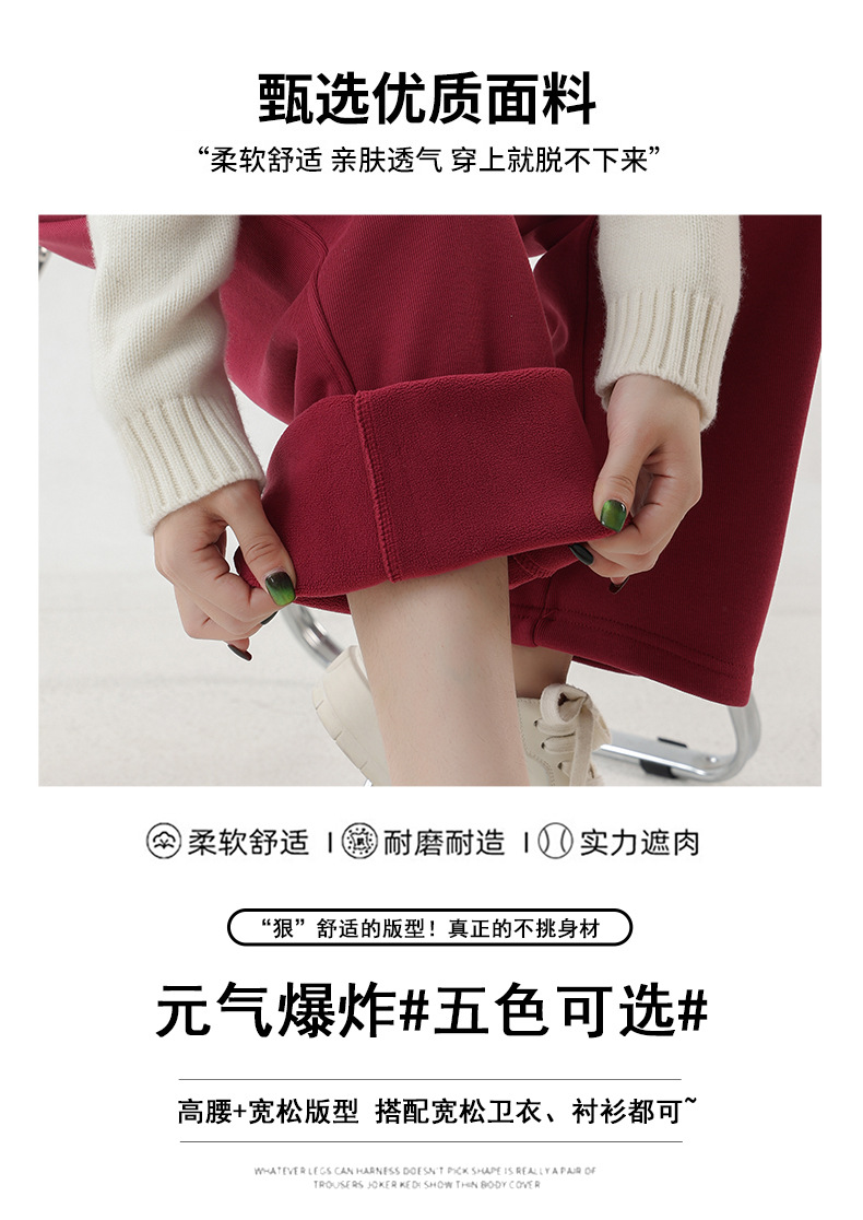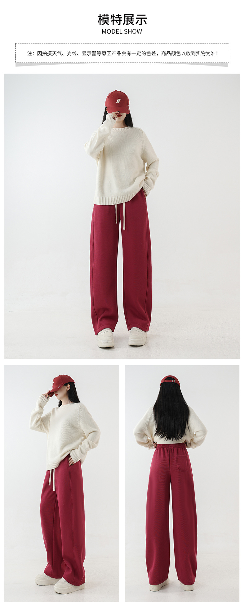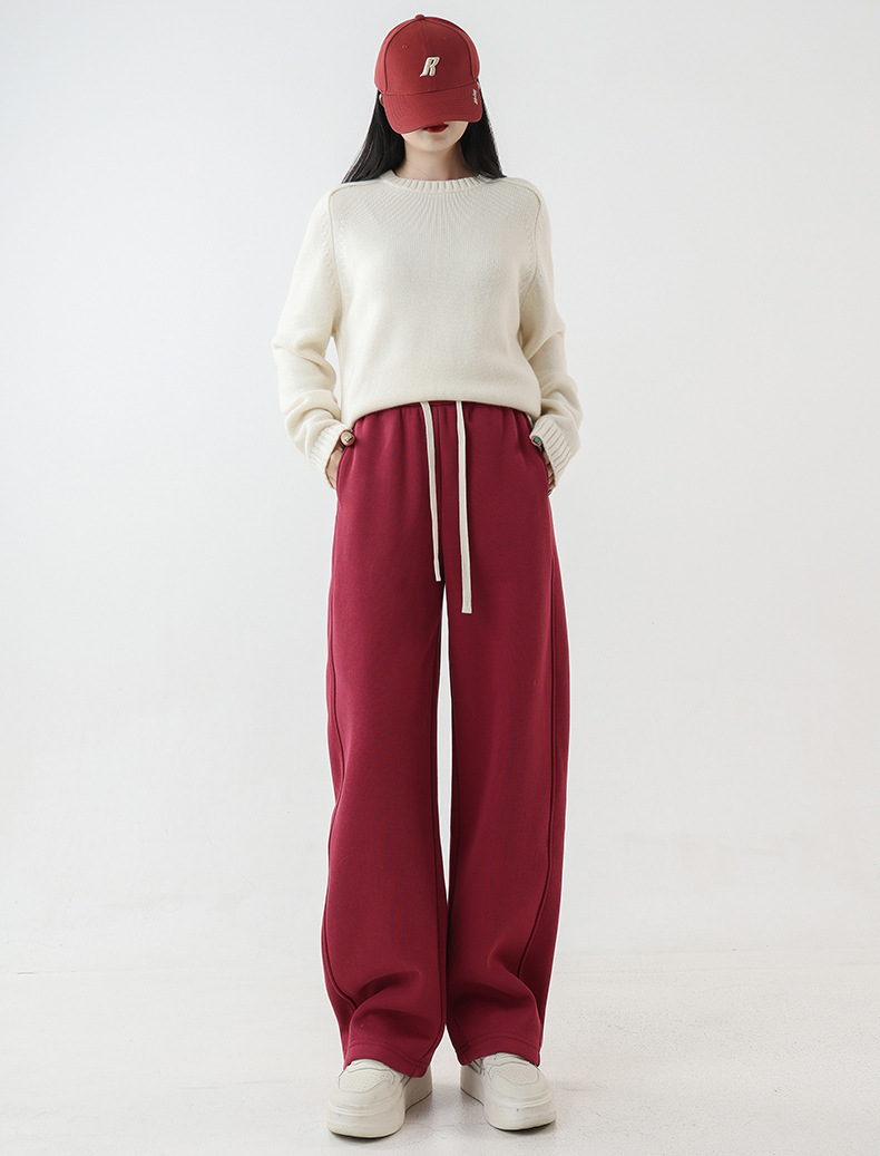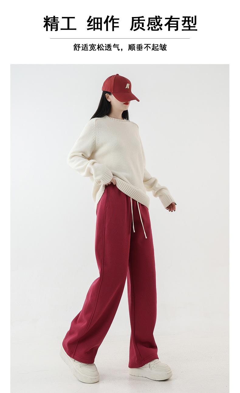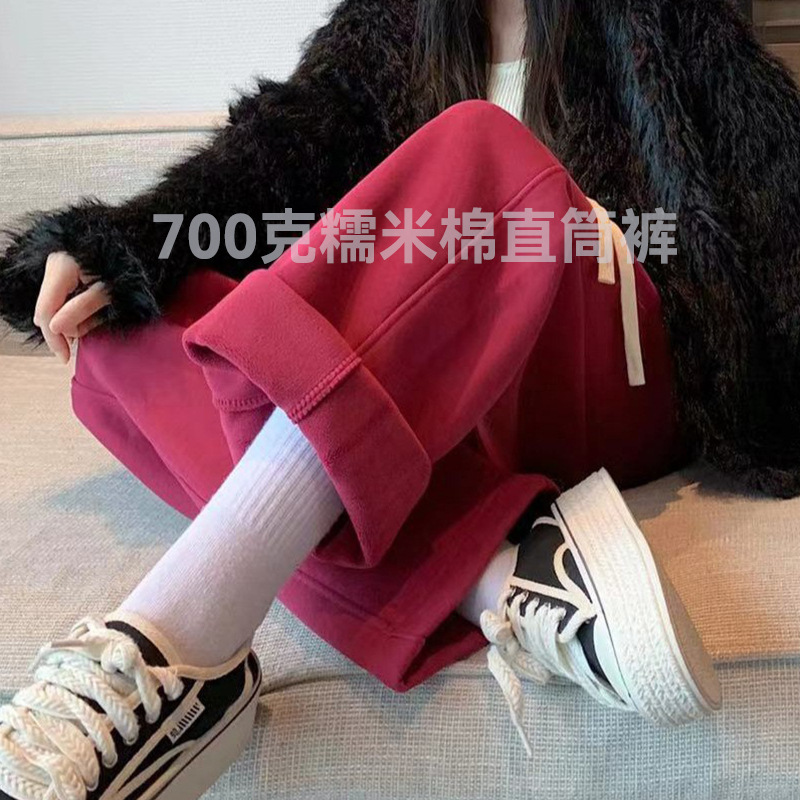700g 캐시미어 스트레이트 레그 팬츠 겨울 새 여성용 캐시미어 안코라 레드 루즈 캐주얼 와이드 레그 팬츠 여성용 바지스토어 가기