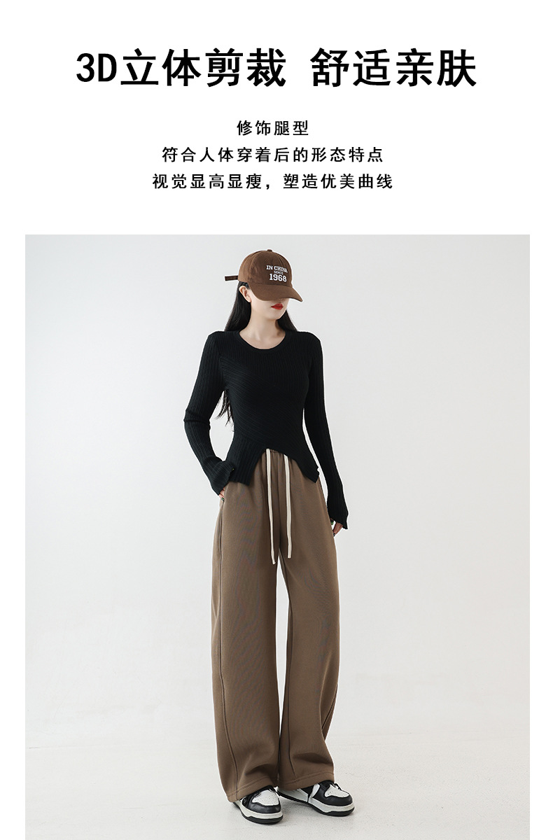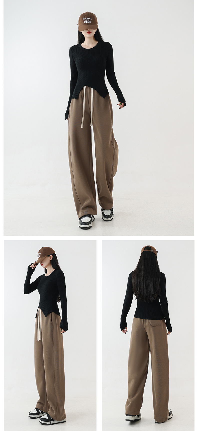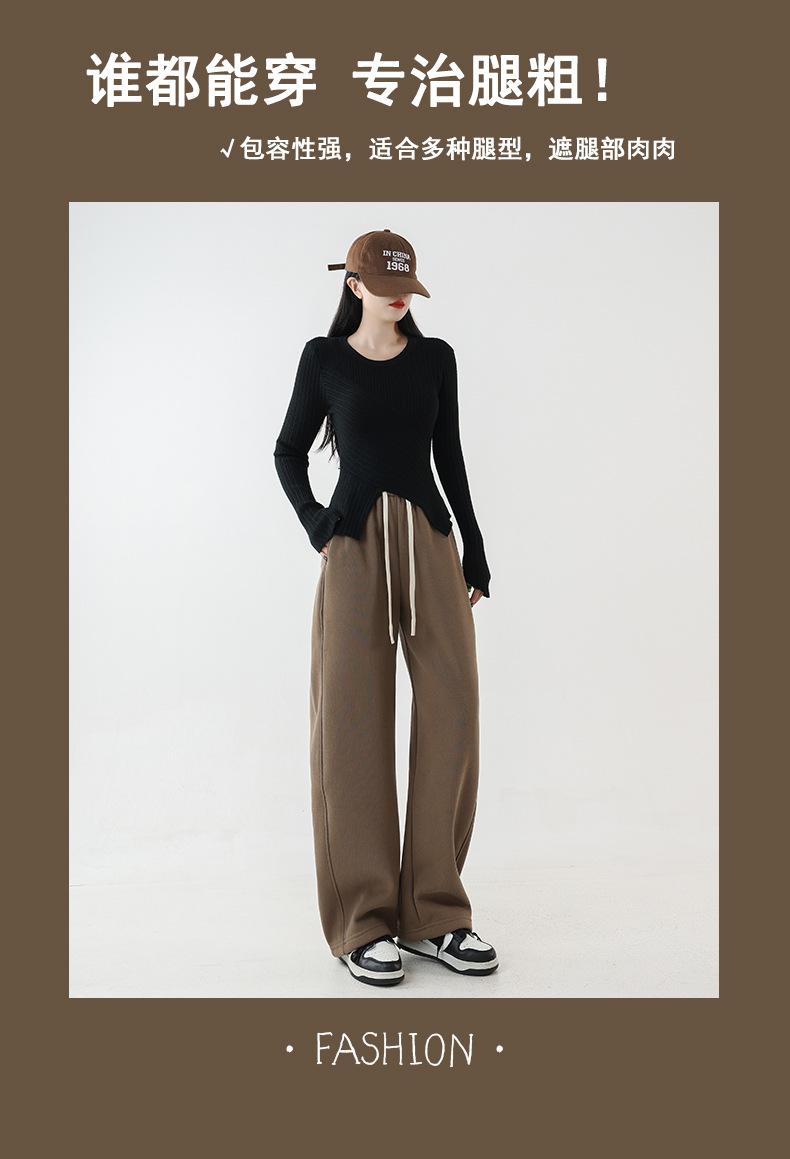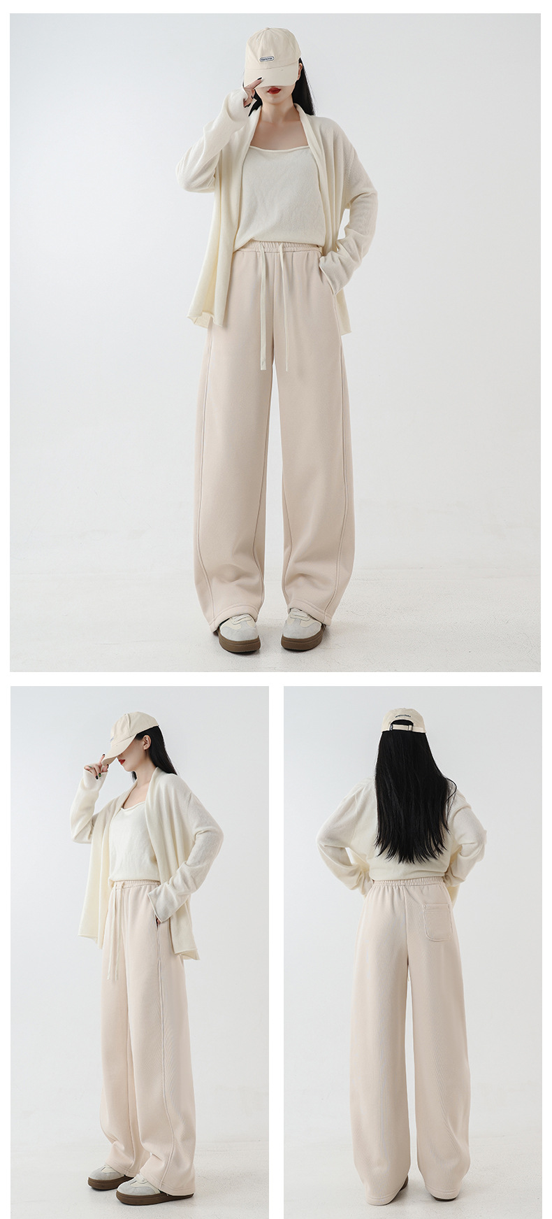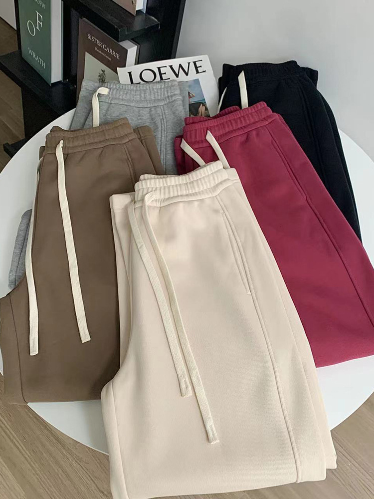 700g 캐시미어 스트레이트 레그 팬츠 겨울 새 여성용 캐시미어 안코라 레드 루즈 캐주얼 와이드 레그 팬츠 여성용 바지스토어 가기