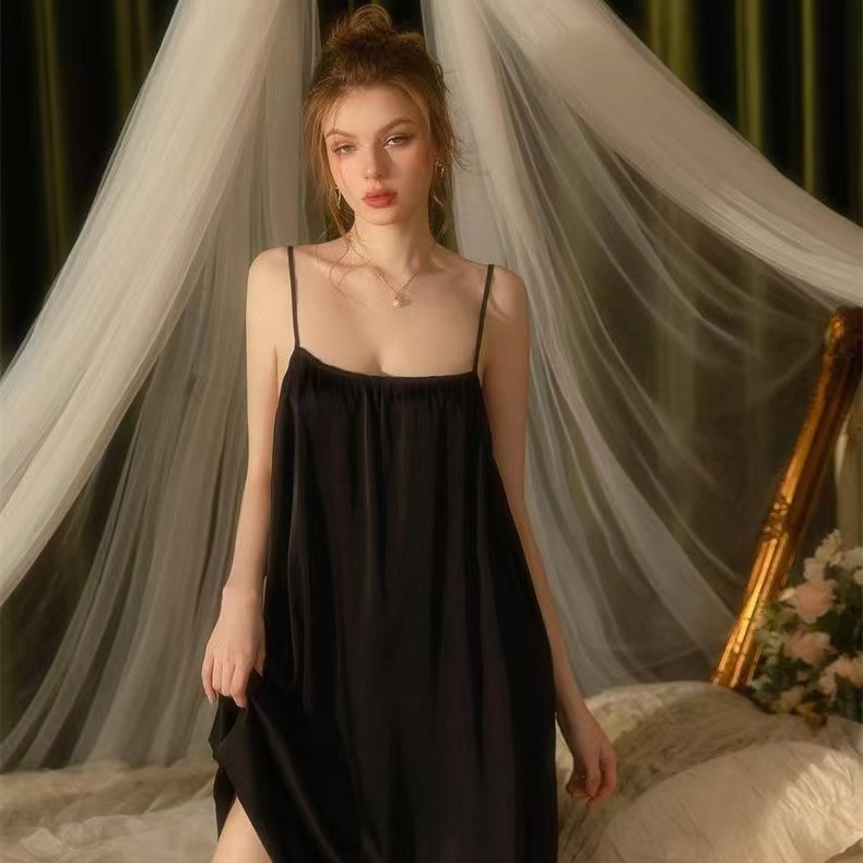 빅사이즈 얇은 백리스 슬립 드레스 여성용 순수하고 섹시한 스타일 뚱뚱한 여성용 홈웨어 중간 길이 슬립 드레스 루즈핏 외출용 가능스토어 가기