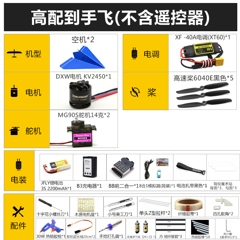 • 손으로 비행하는 표준 구성(리모컨은 포함되어 있지 않음)