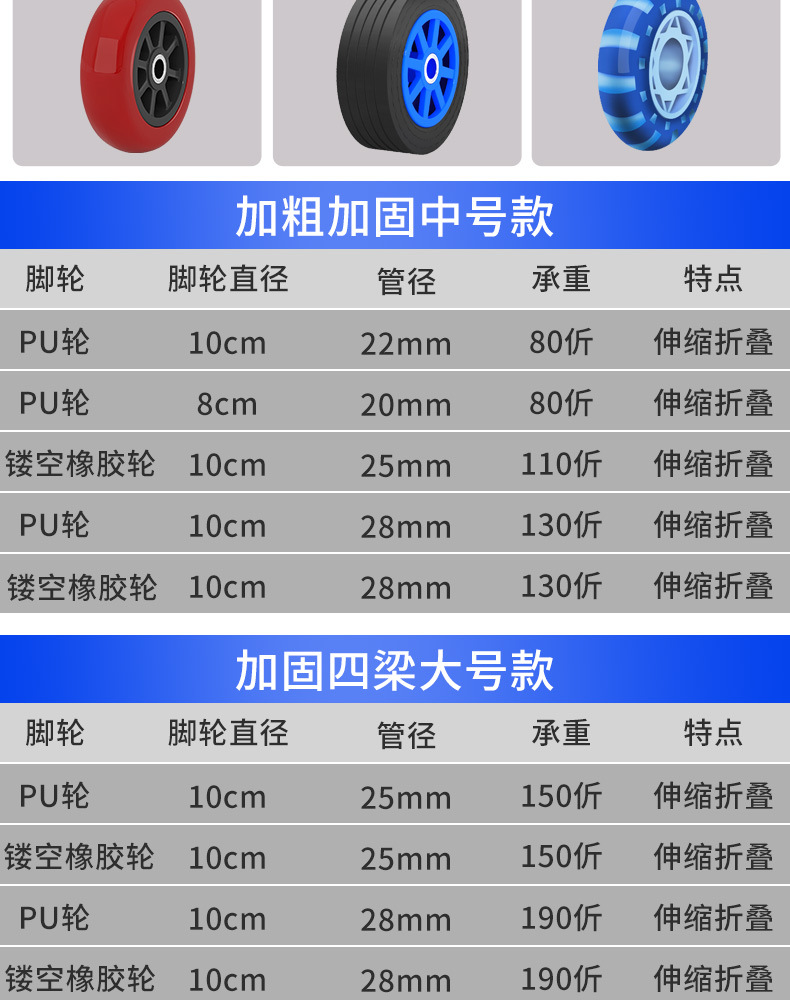 • PU 휠 22Φ 튜브(중간 크기, 두꺼워지고 강화됨) 적재 용량 95- 바인딩 로프 포함(반품에 포함되지 않음)