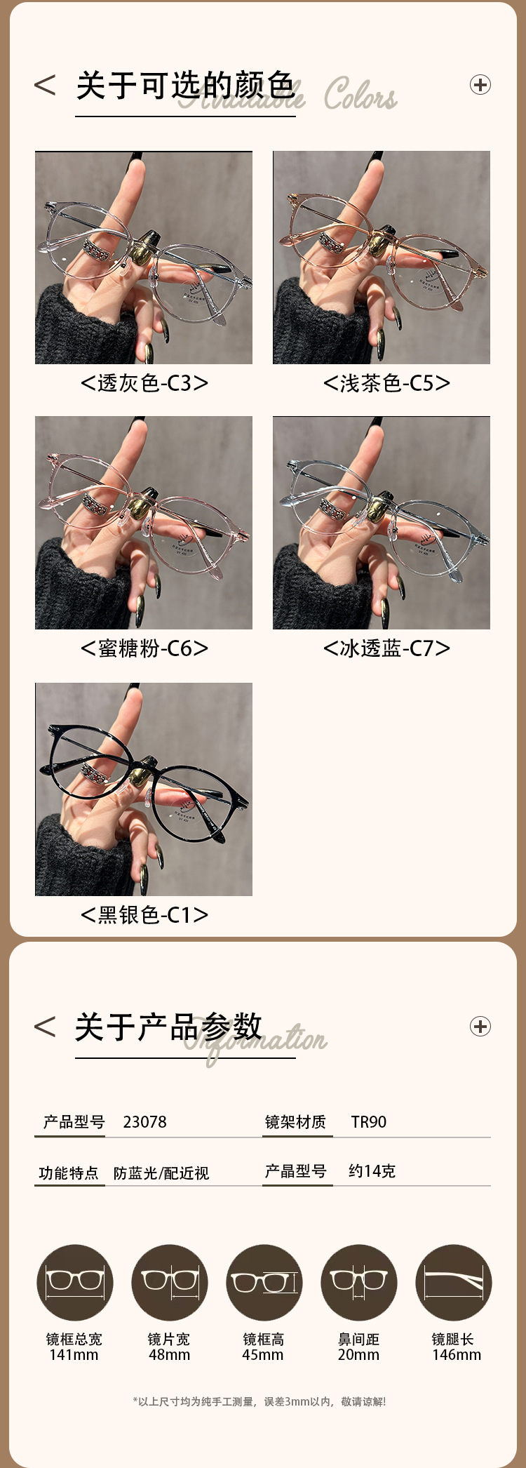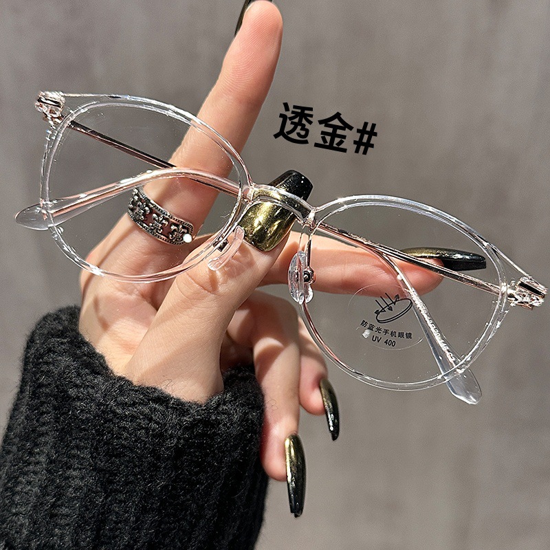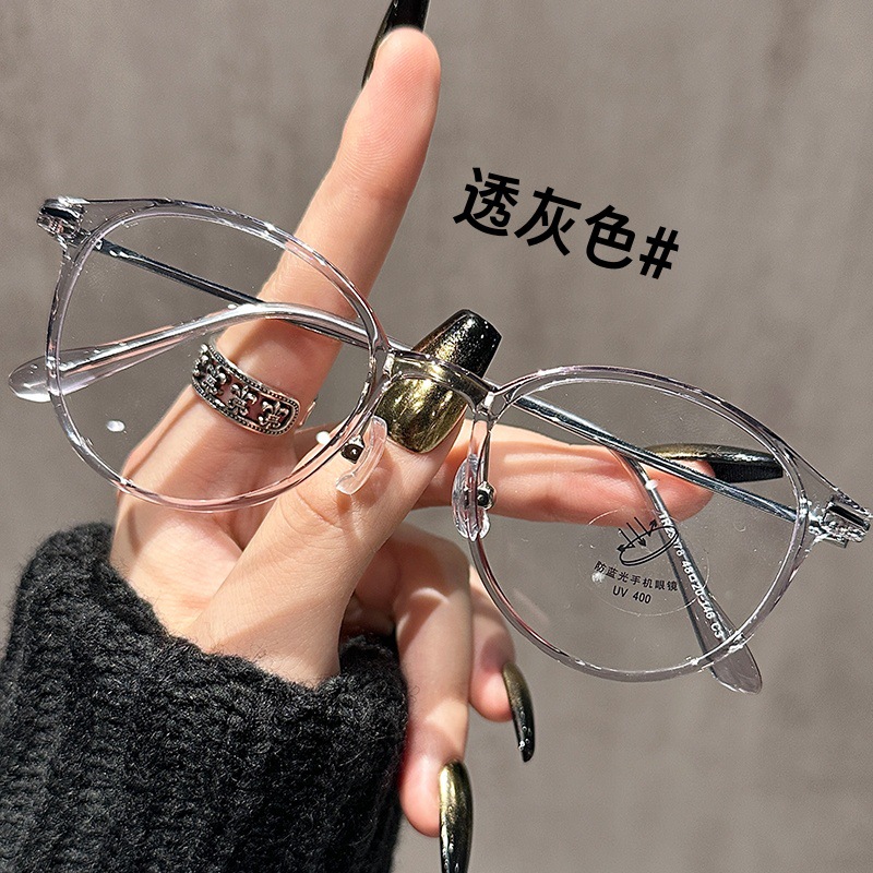 23078 캠퍼스 스타일 TR90 학생 근시 안경 프레임 혼합 배치 타원형 귀여운 스타일 틈새 얼음 투명 파란색 평면 거울스토어 가기