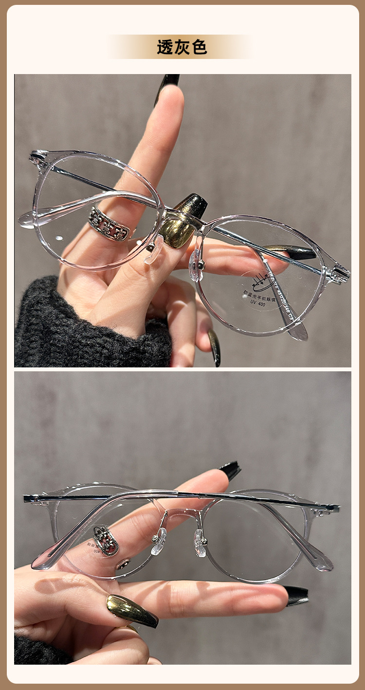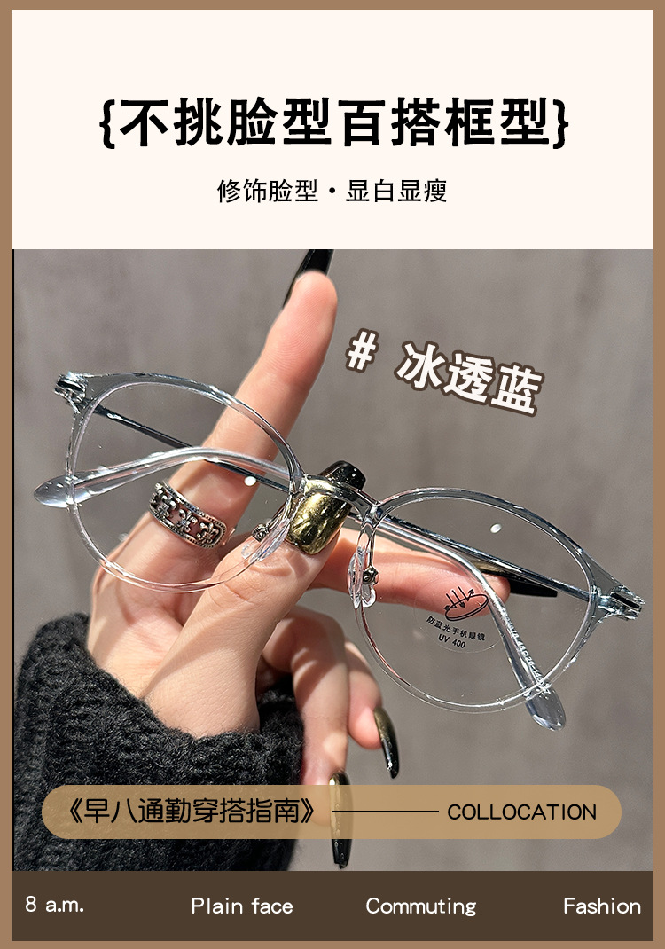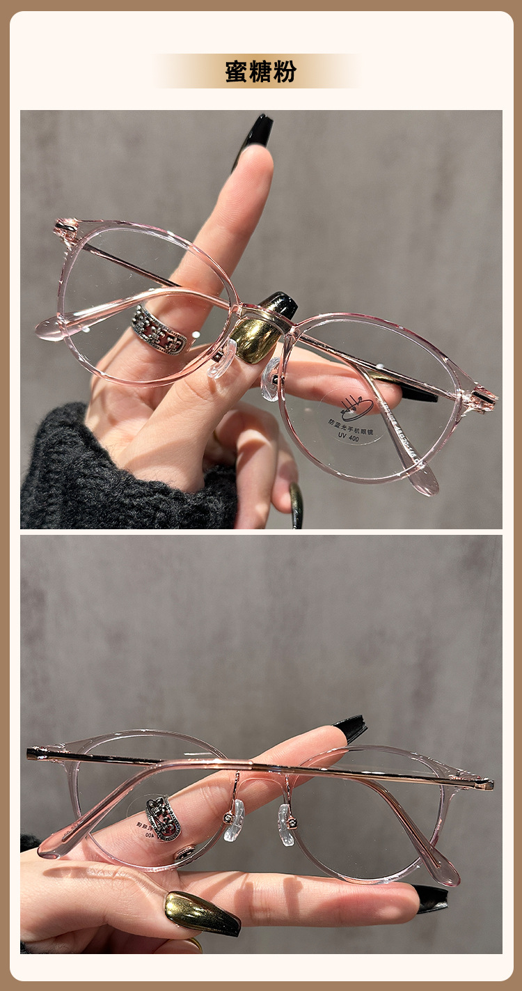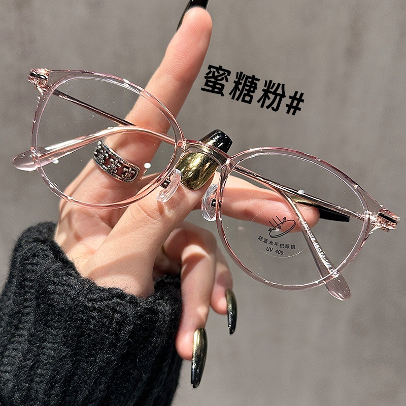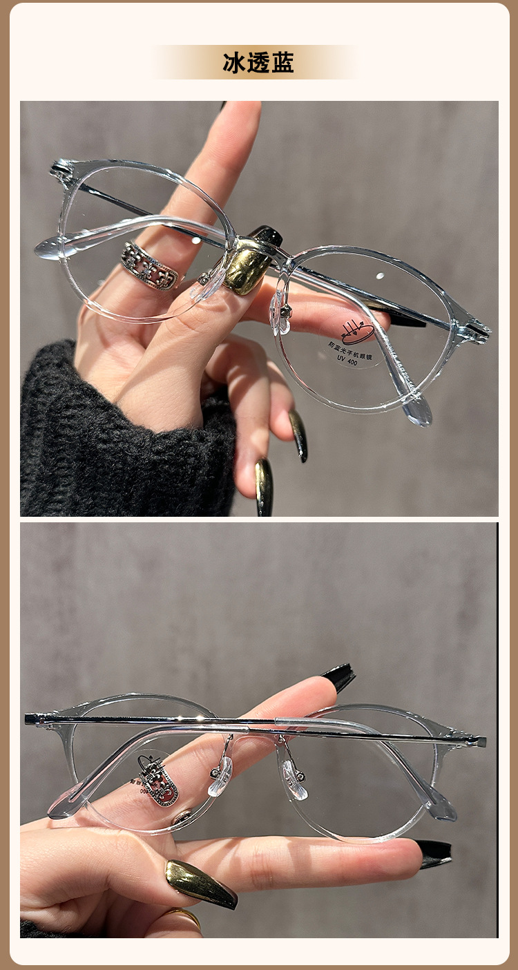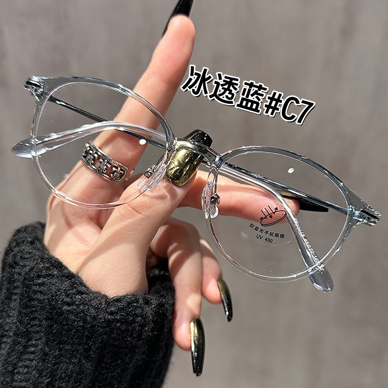 23078 캠퍼스 스타일 TR90 학생 근시 안경 프레임 혼합 배치 타원형 귀여운 스타일 틈새 얼음 투명 파란색 평면 거울
