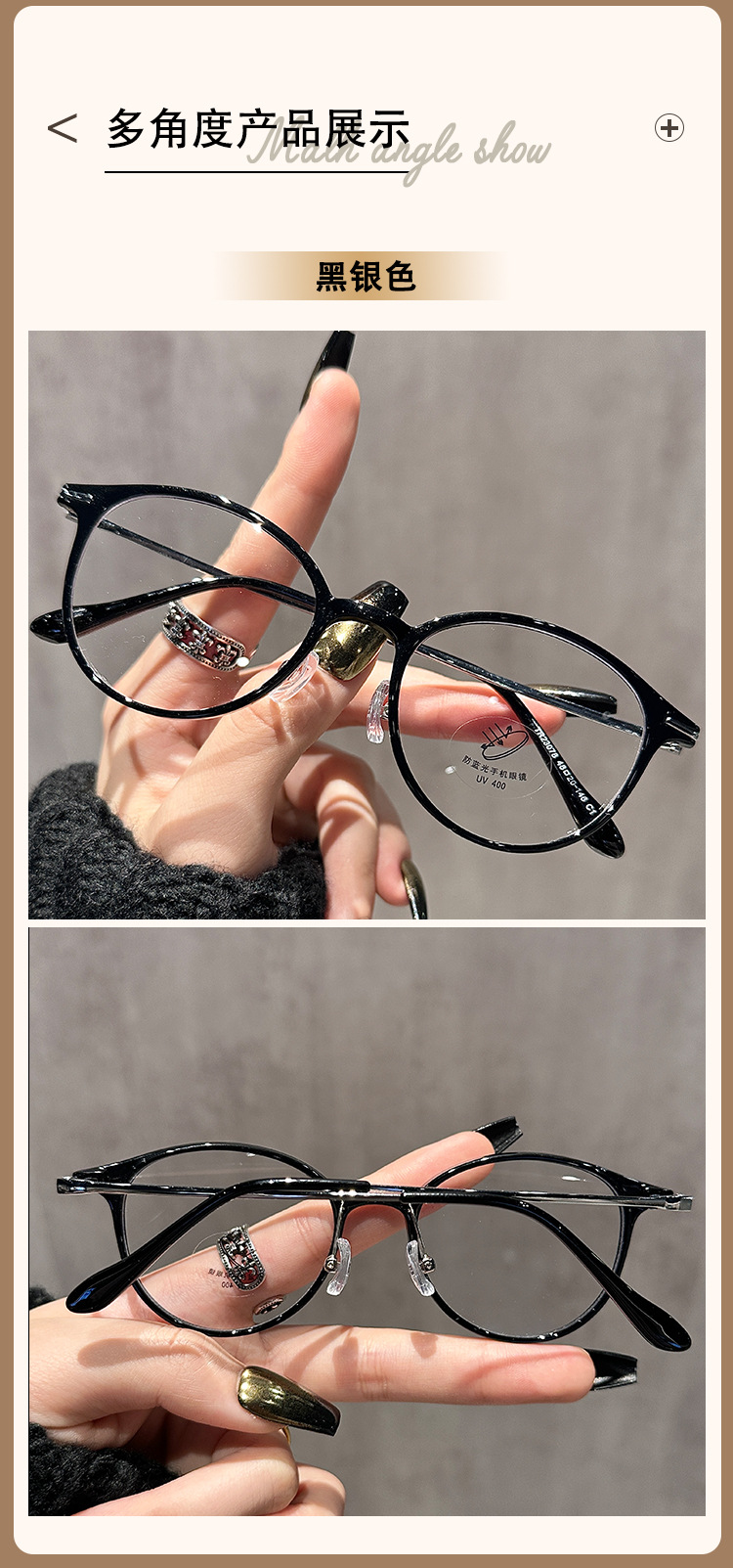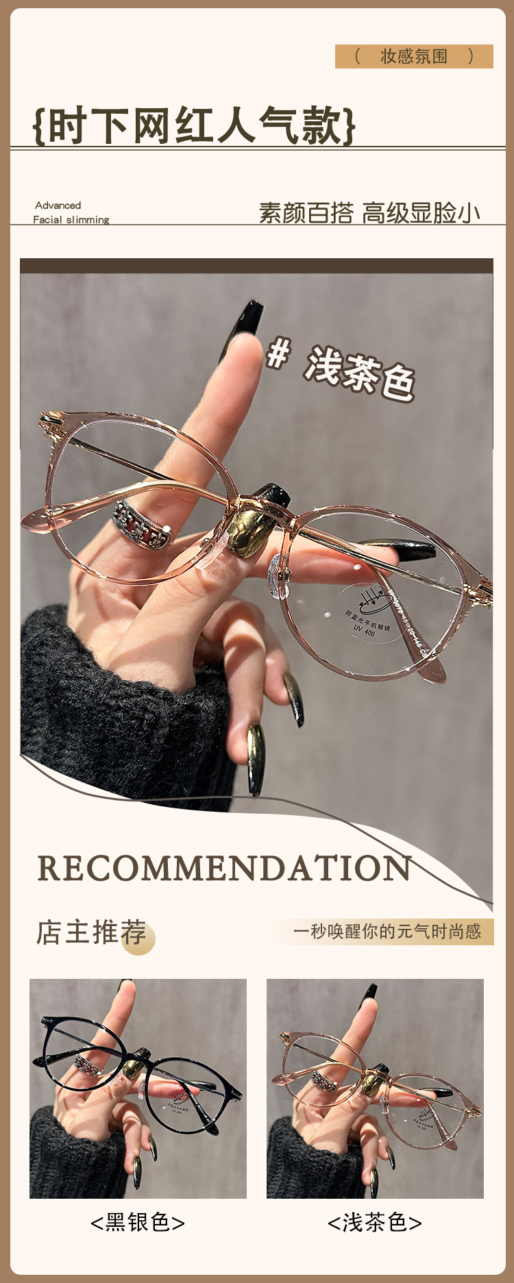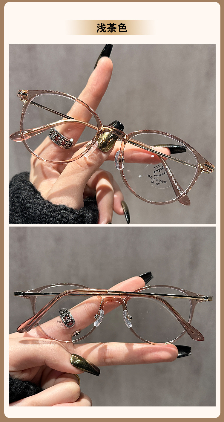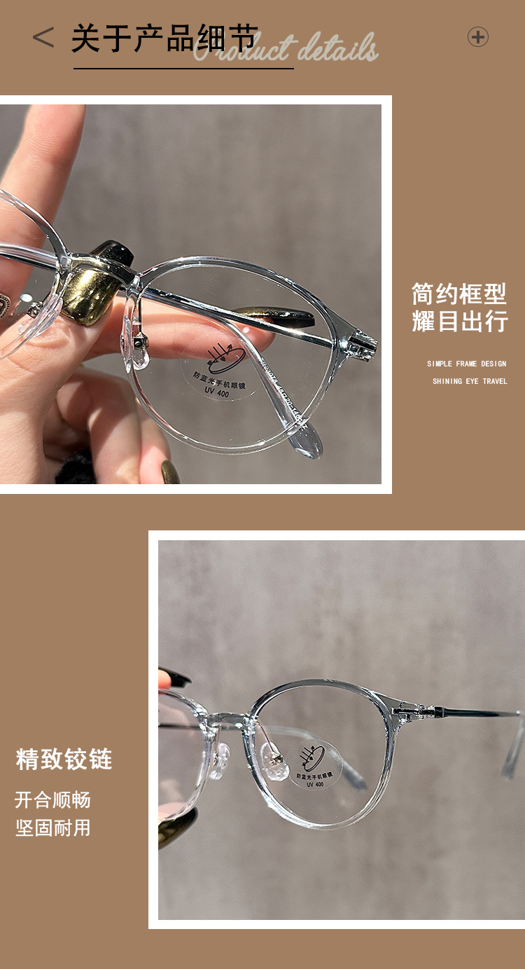 23078 캠퍼스 스타일 TR90 학생 근시 안경 프레임 혼합 배치 타원형 귀여운 스타일 틈새 얼음 투명 파란색 평면 거울