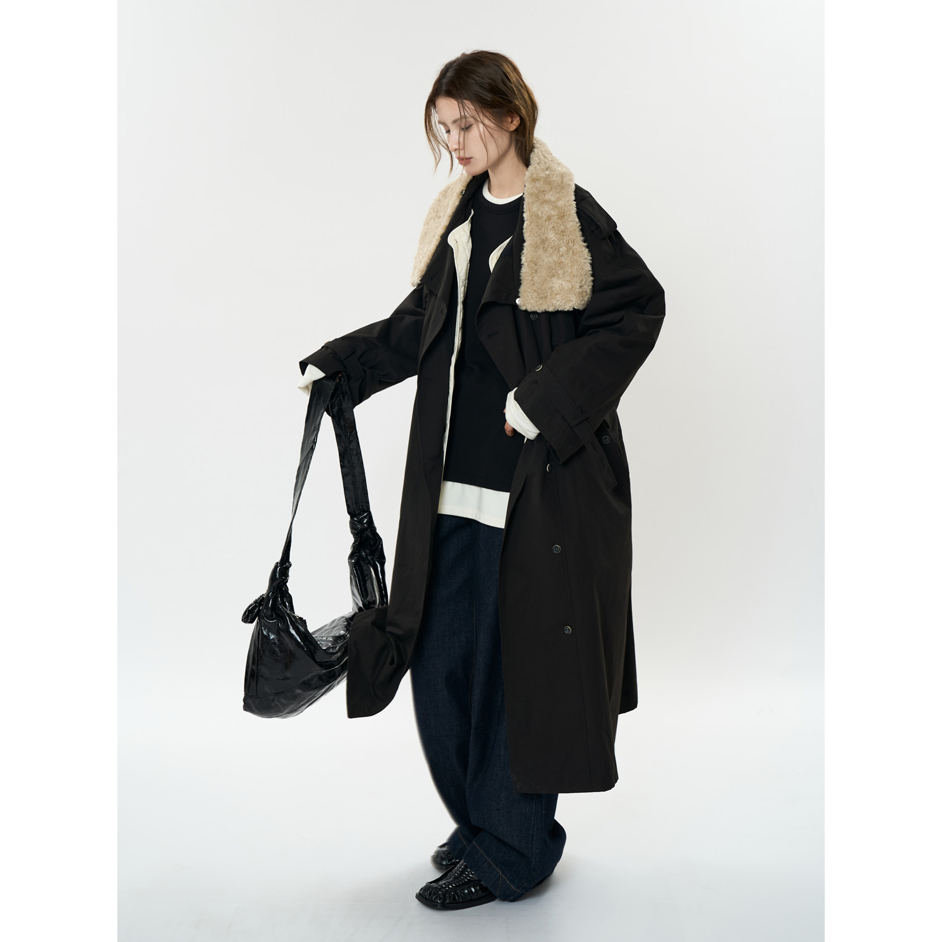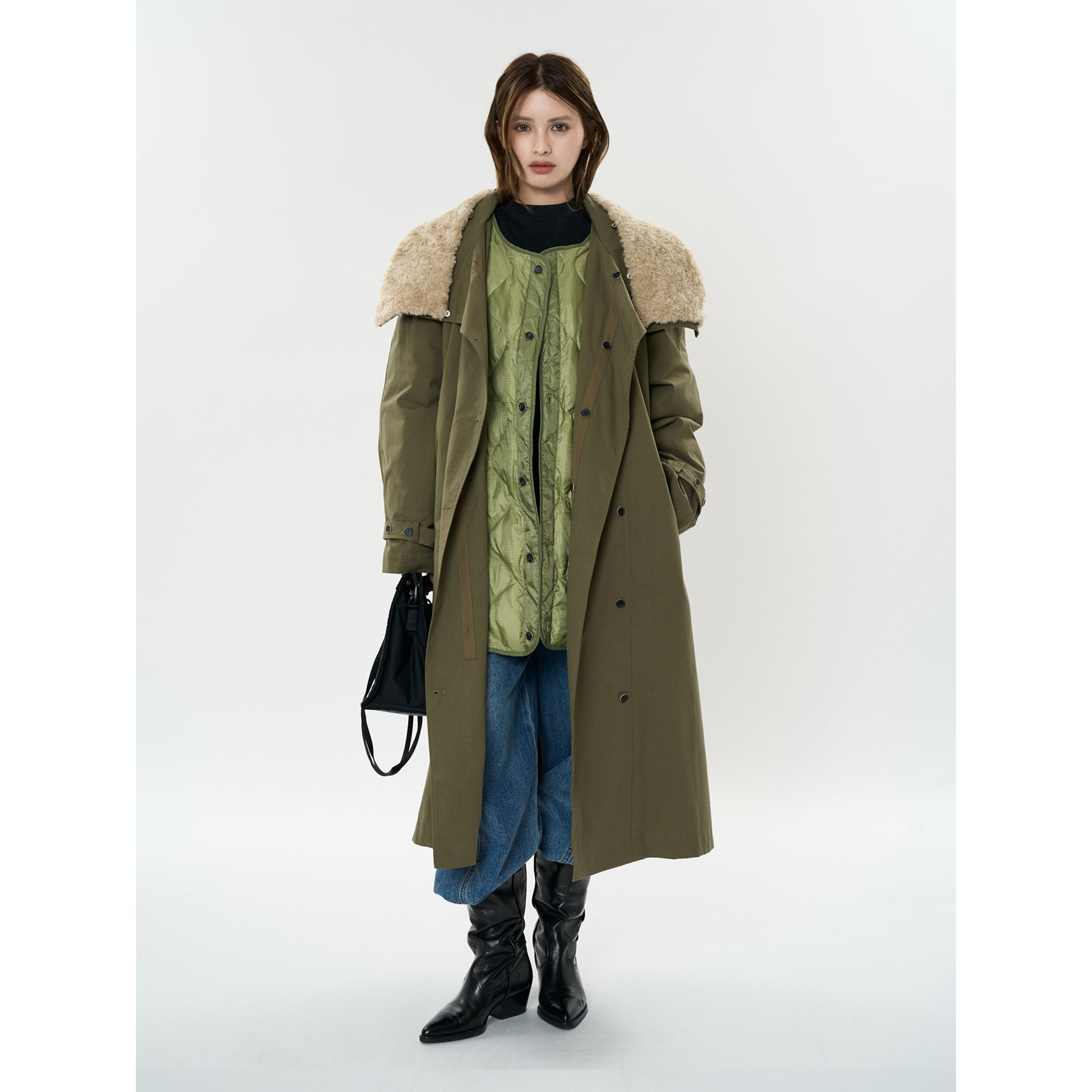 여성을위한 Lvu 겨울 새로운 일본 캐주얼 분리 가능한 긴 코트 다운 재킷 투피스 편안한 따뜻한 재킷