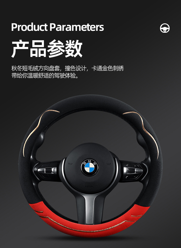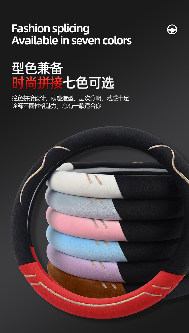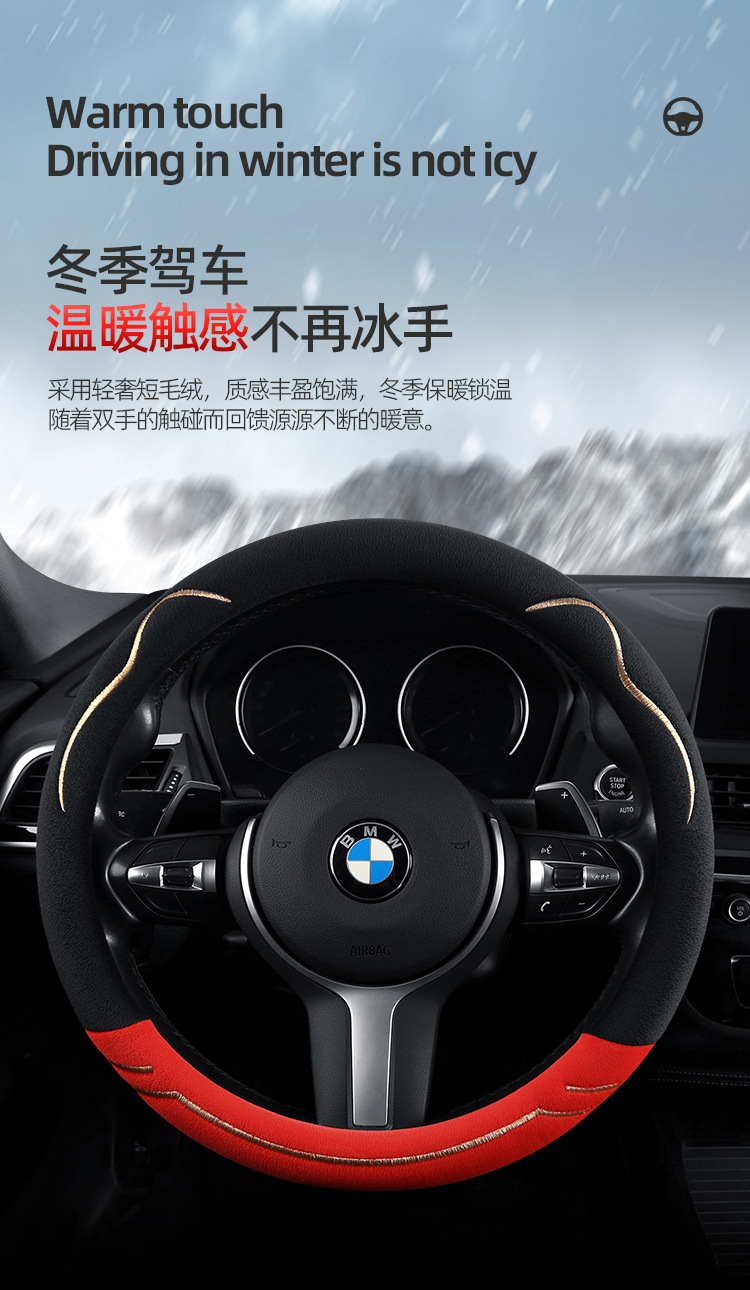 국경 간 뜨거운 판매 자동차 스티어링 휠 커버 겨울 봉제 편안한 따뜻한 스티어링 휠 커버 자동차 미끄럼 방지 핸들 커버