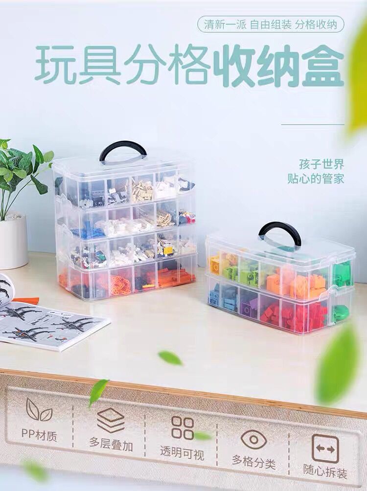 투명한 레고 저장 상자 다층 이동식 휴대용 조립 건물 블록 장난감 저장 상자 플라스틱 장 우홍스토어 가기