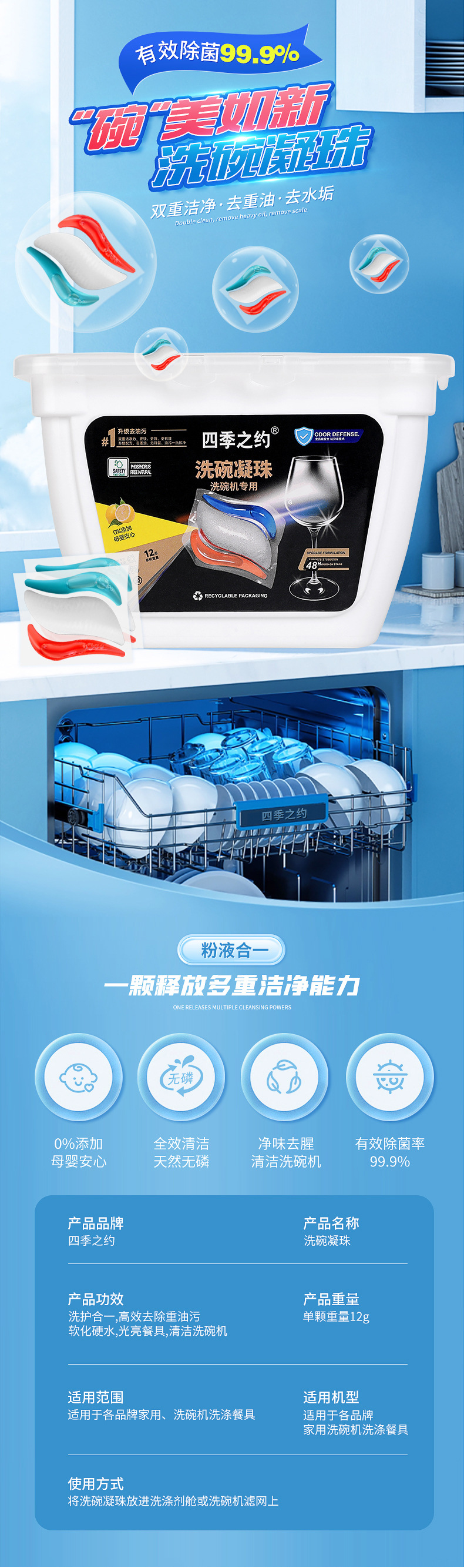 3-in-1 다기능 식기세척기 전용 딥클린 세제 식기세척기용 세제 비즈 도매