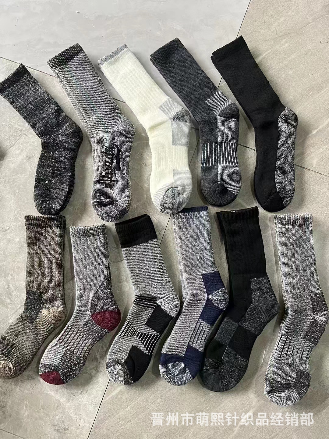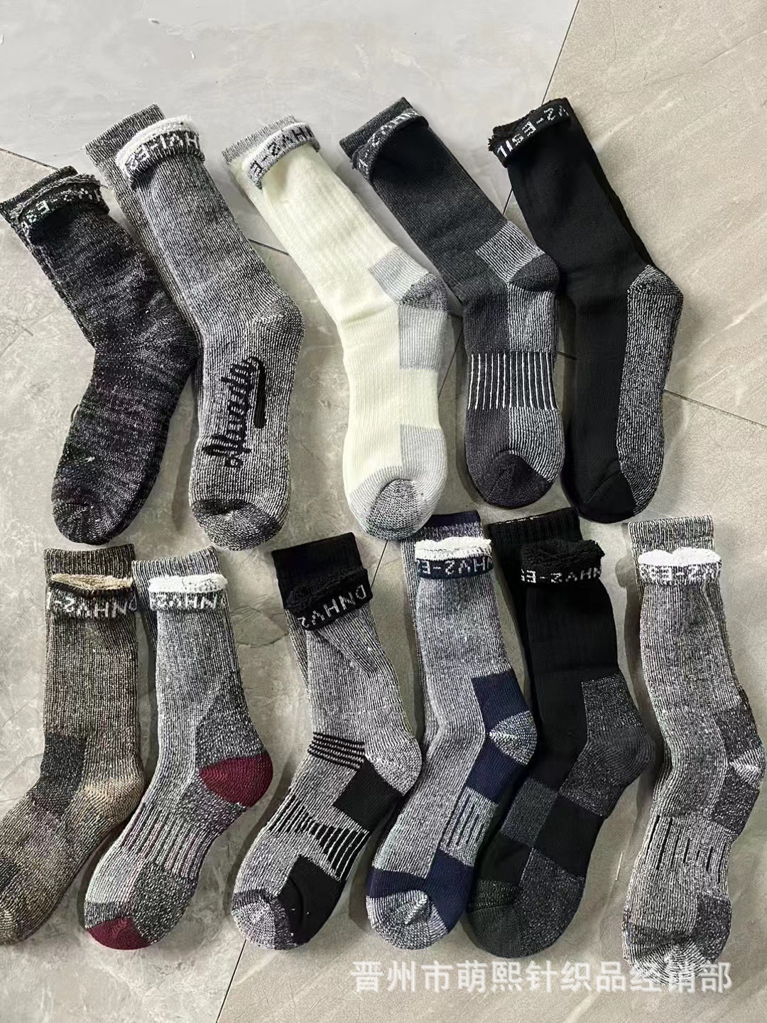외국 무역 양말 아웃도어 메리노 울 양말 테리 하이 튜브 하이킹 등산 양말 남녀 공용 두꺼운 보온 도매