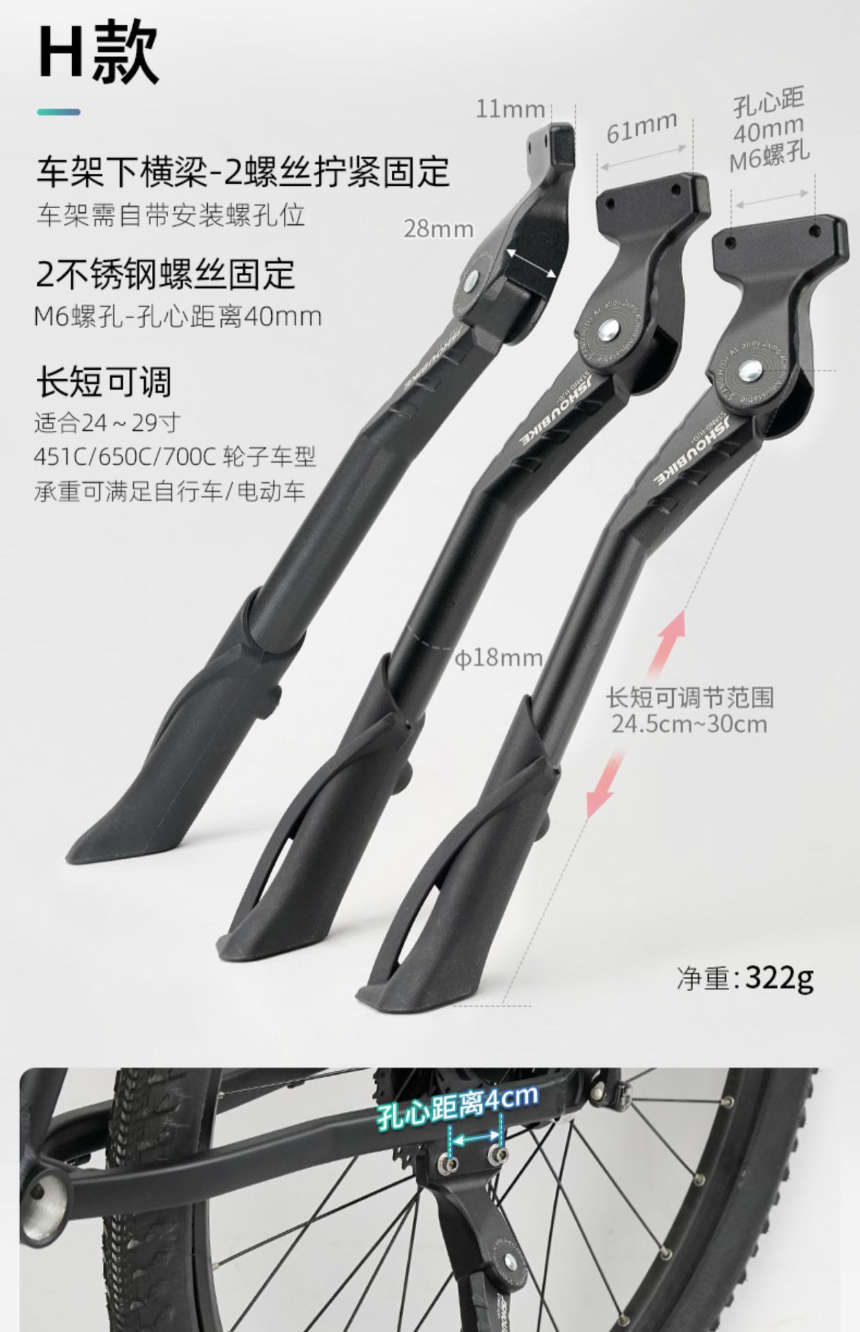 • H형_두꺼운 알루미늄_2홀 설치_24~ 29inch 휠에 적합한 조절 가능한 발 지지대