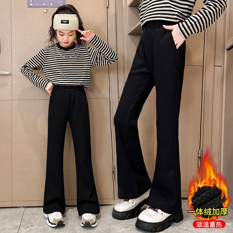 소녀 바지 가을과 겨울 한 조각 기모 어린이 꽃 바지 소녀 겨울 유행 외부는 검은 색 마이크로 라르 바지스토어 가기