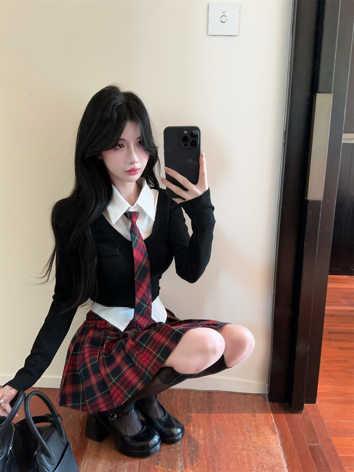 • 빨간색 체크 무늬 스커트