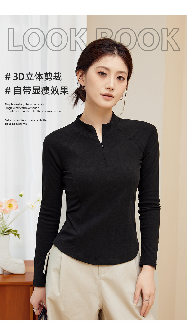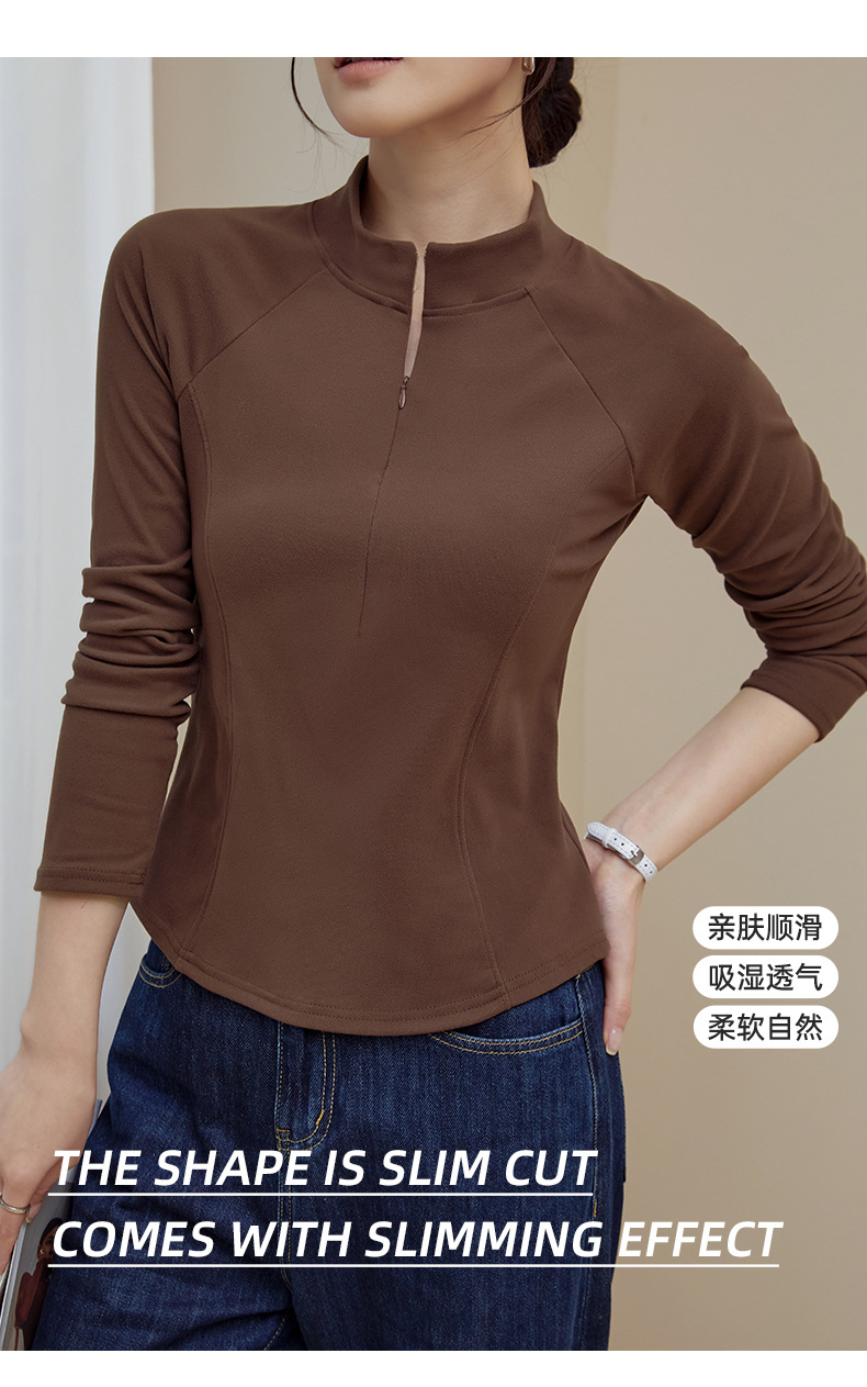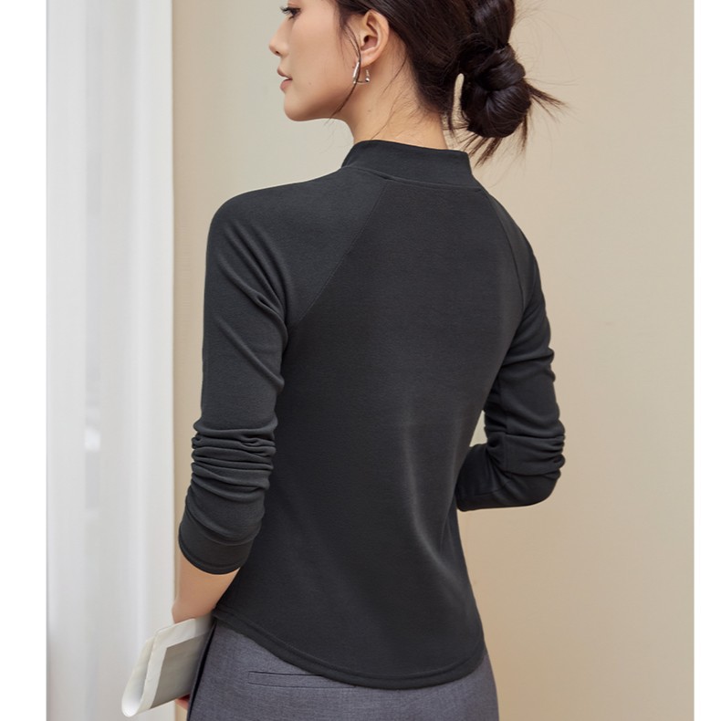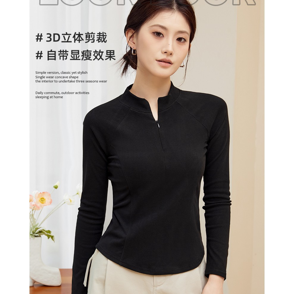 하프 지퍼 슬림 피트베이스 셔츠 스웨터 새 스타일 여성 올 매치 긴팔 티셔츠 통기성 캐주얼 내부 재킷 898스토어 가기