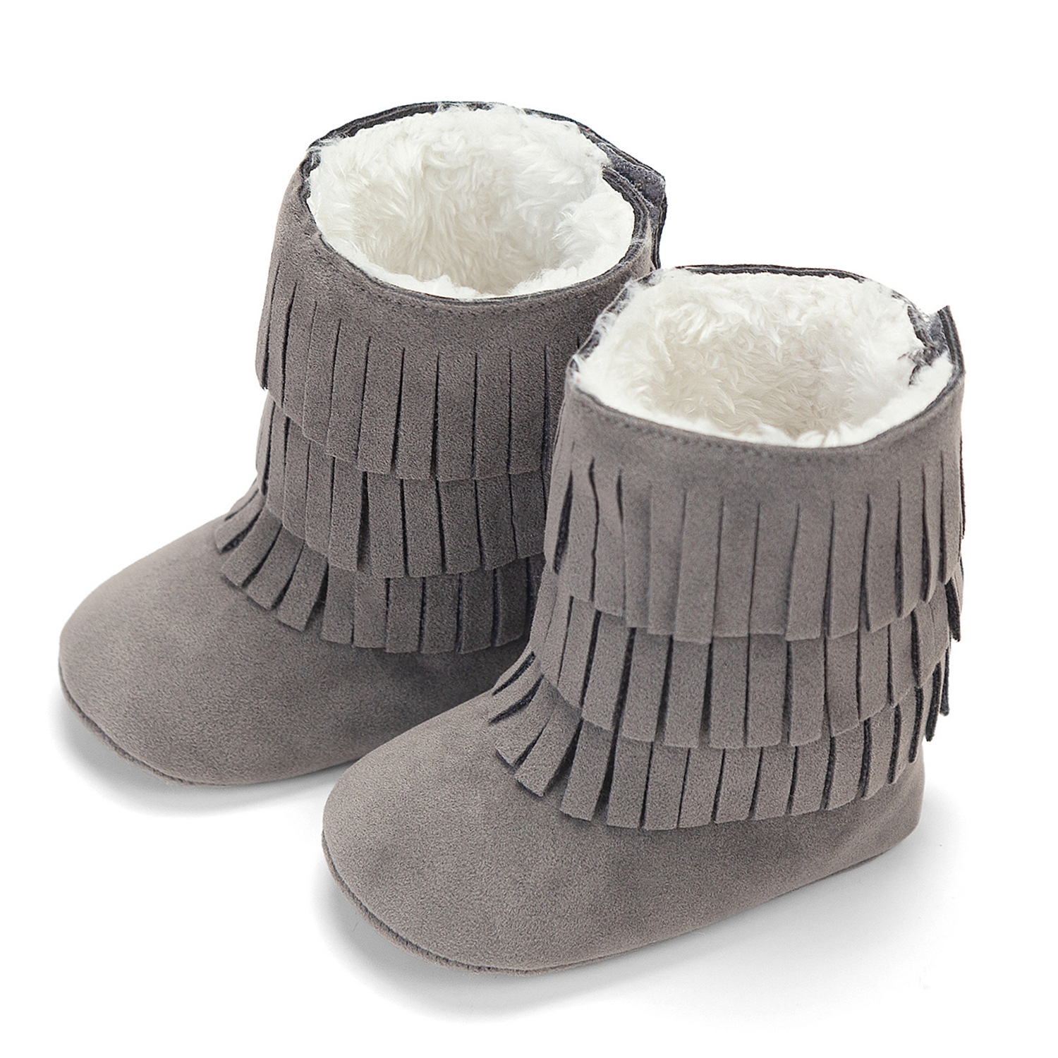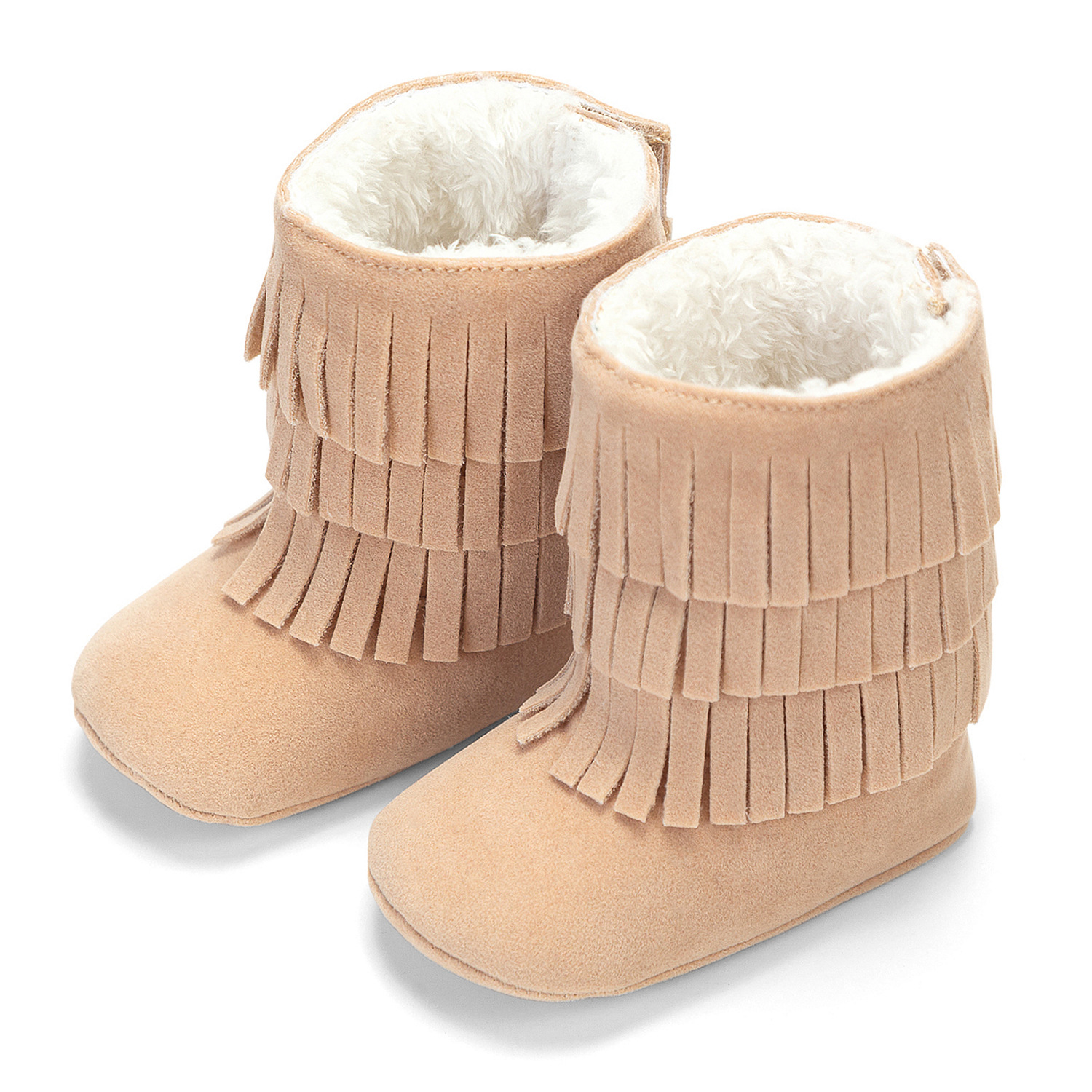 2024 겨울 새로운 패션 술 아기 부츠 따뜻한 아기 두꺼운 유아면 신발스토어 가기