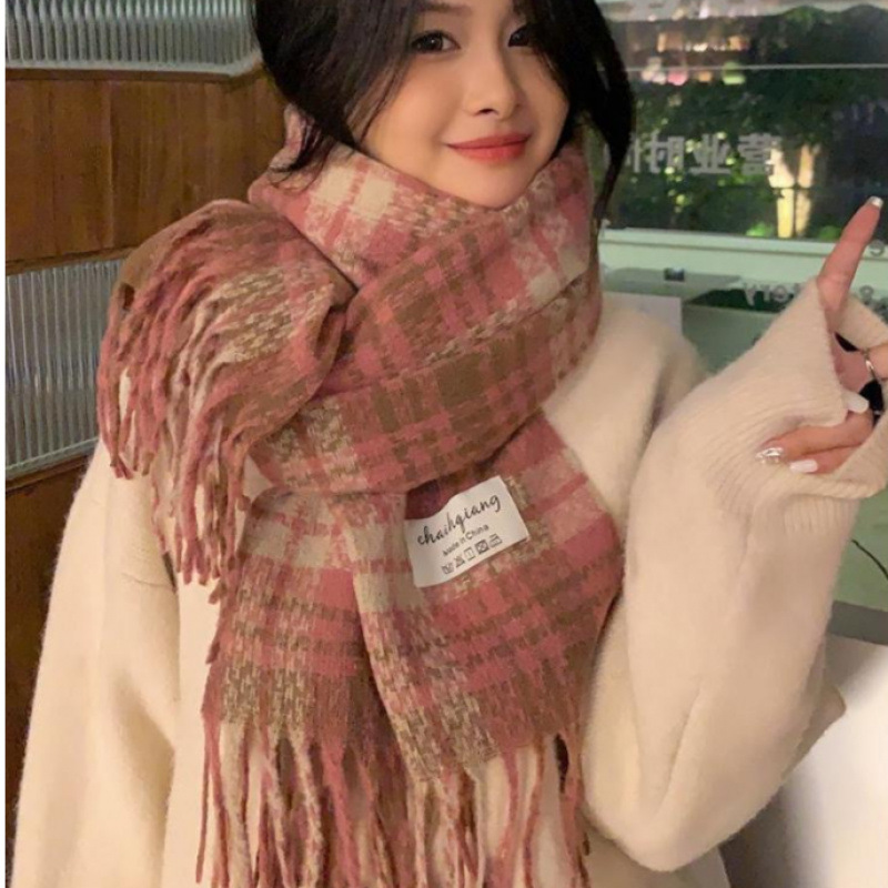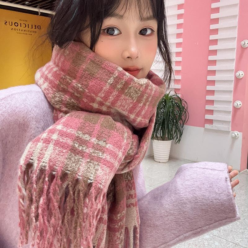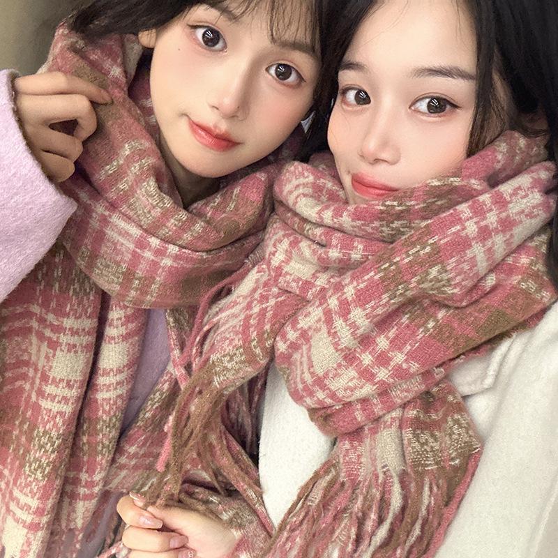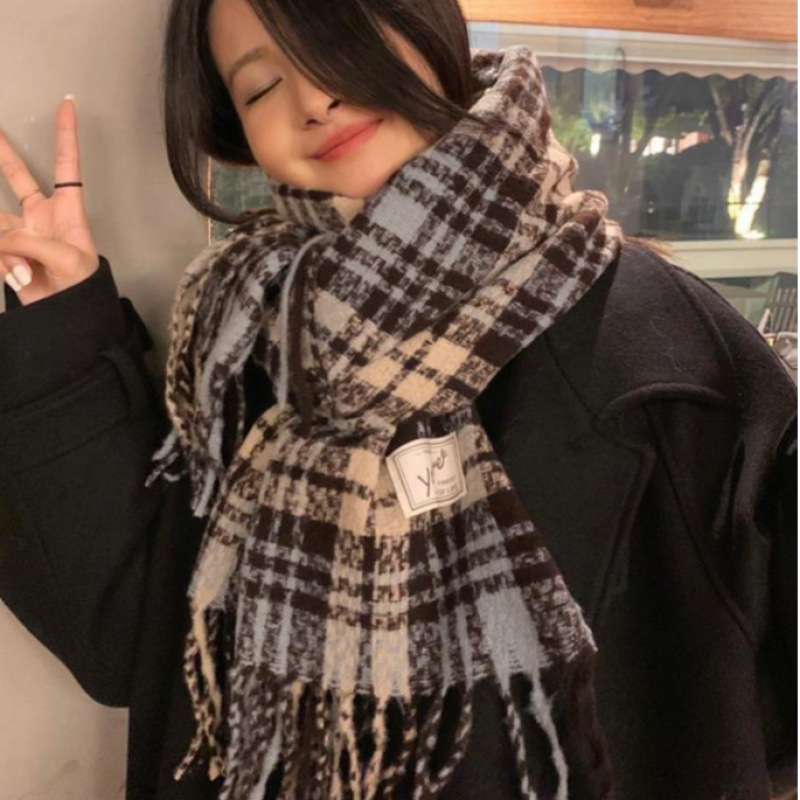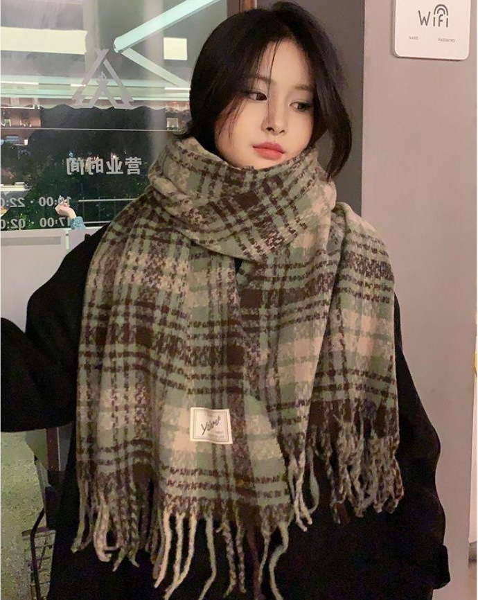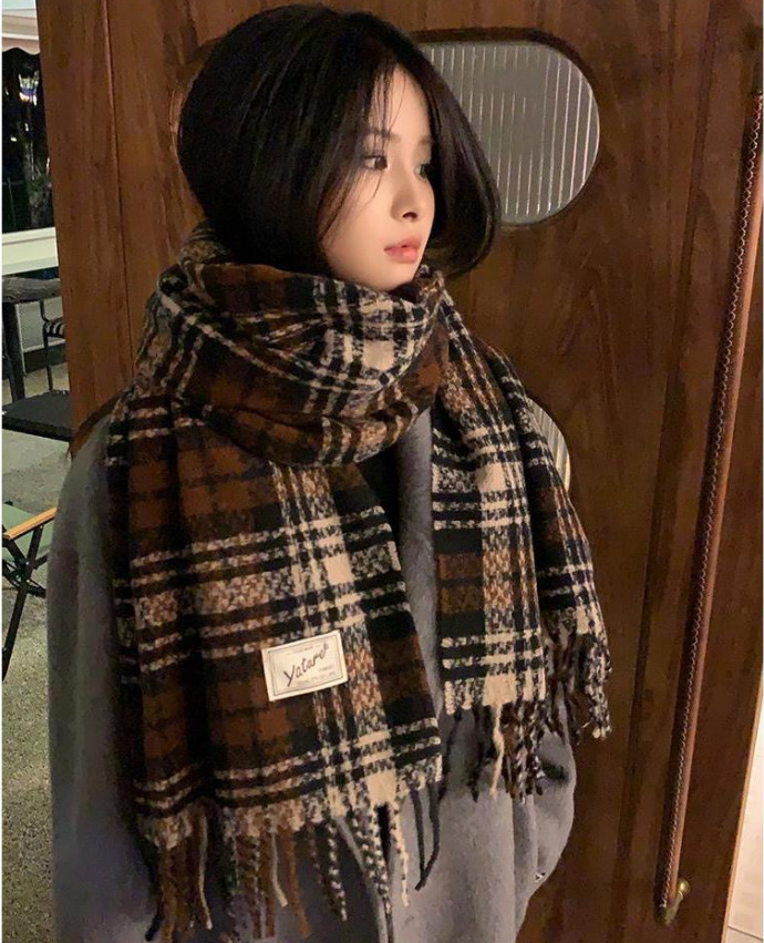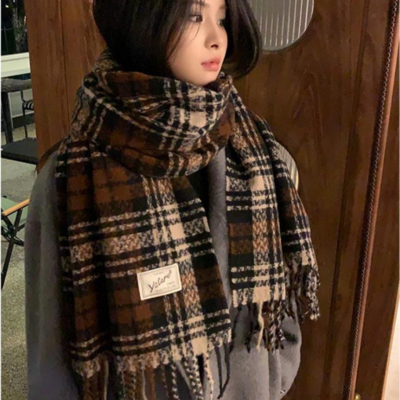고급 격자 무늬 스카프 여자 겨울 2023 새로운 한국식 올매치 예술적 커플 학생 통근 따뜻한 스카프스토어 가기