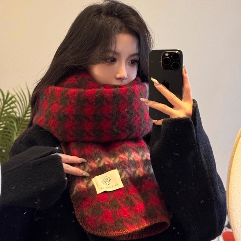 빨간색 체크무늬 스카프 크리스마스 스카프 한국 스타일 분위기 가을 겨울 다용도 고급스러운 캐시미어 숄 스카프