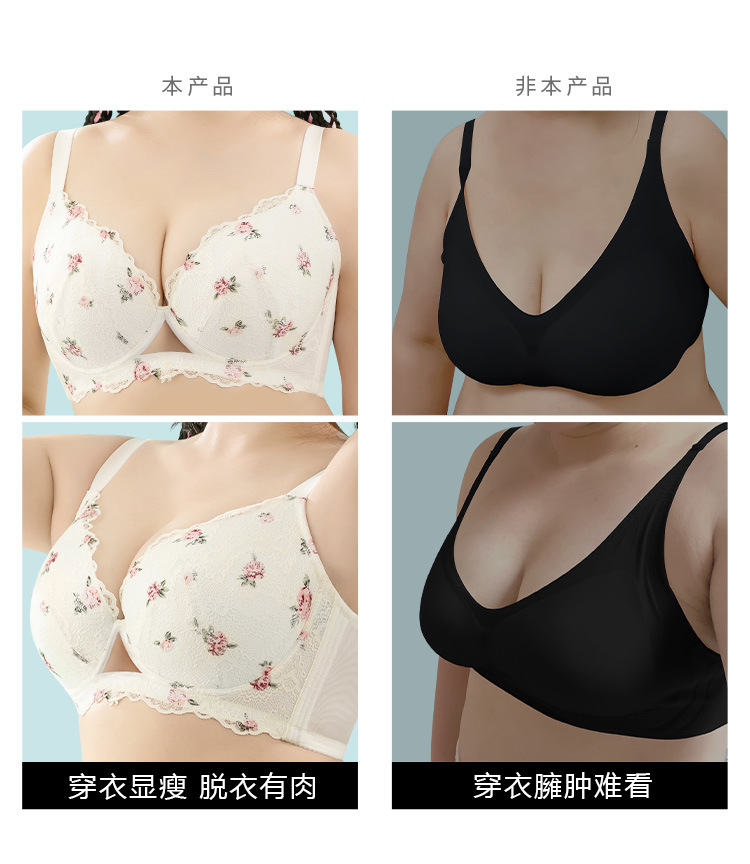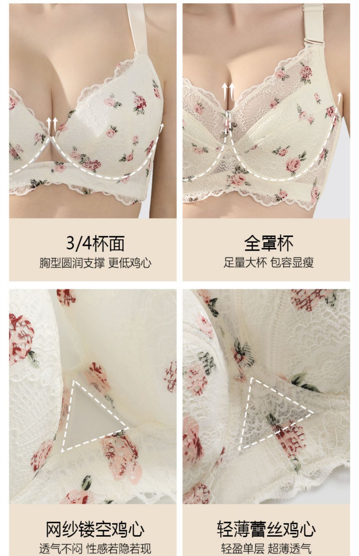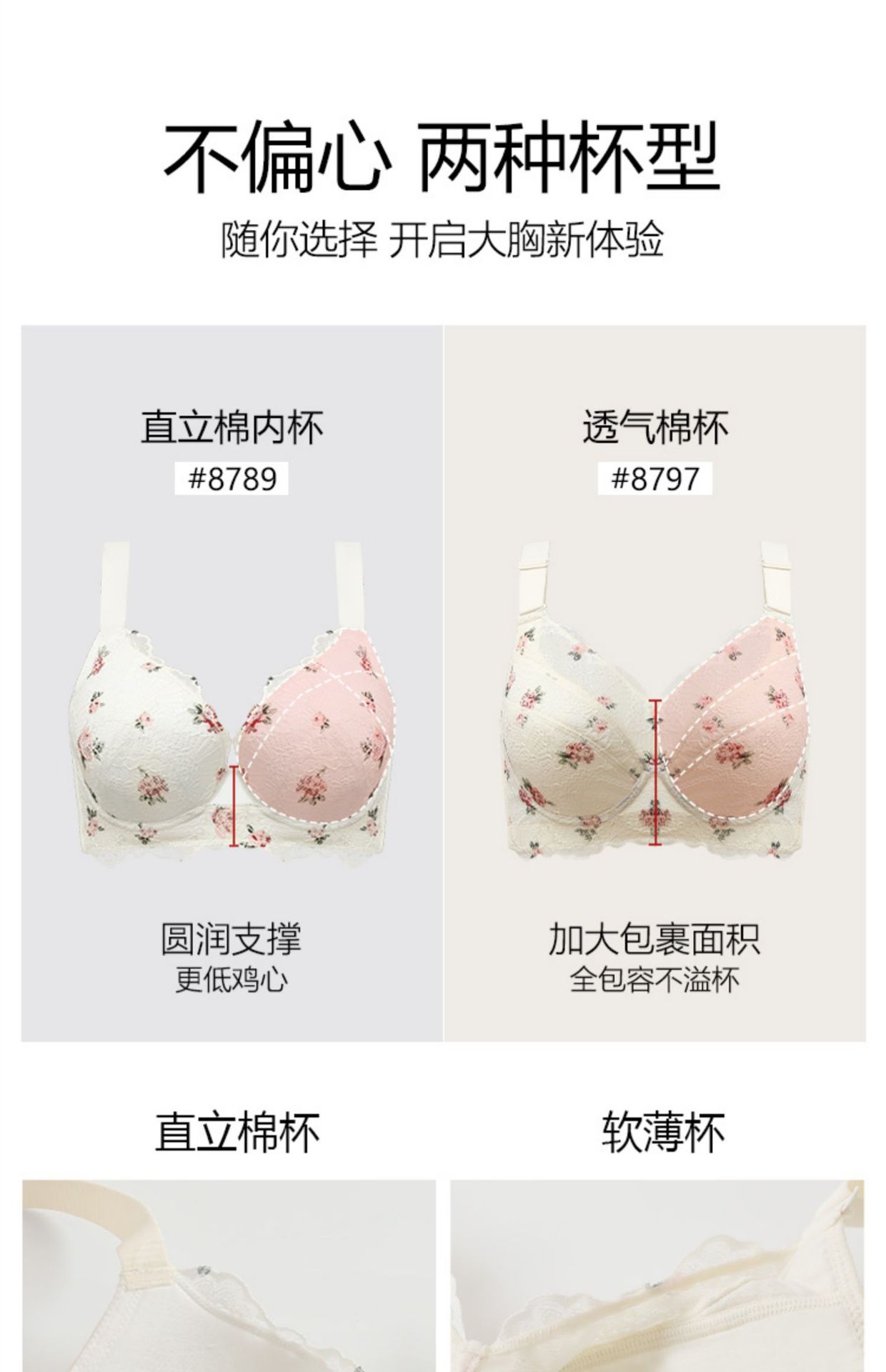 공장 플러스 사이즈 속옷 여성 모임 및 투킹 파름 방첩 강철 반지 상단 Bracing 대형 가슴 쇼케이싱 통통녀 얇은 브래지어스토어 가기