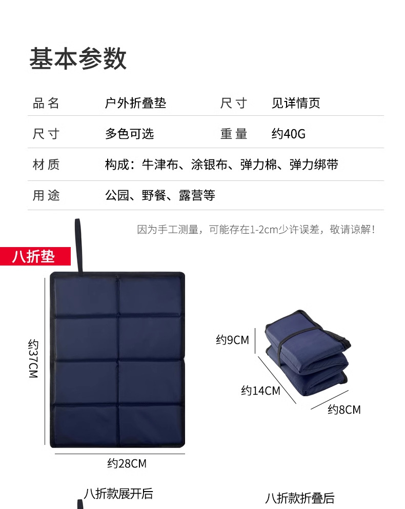 야외용 접이식 소형 쿠션, 휴대용 소형 쿠션, 버스 공원 냉각 및 방습 쿠션, 옥스포드 천 두꺼운 시트 쿠션스토어 가기