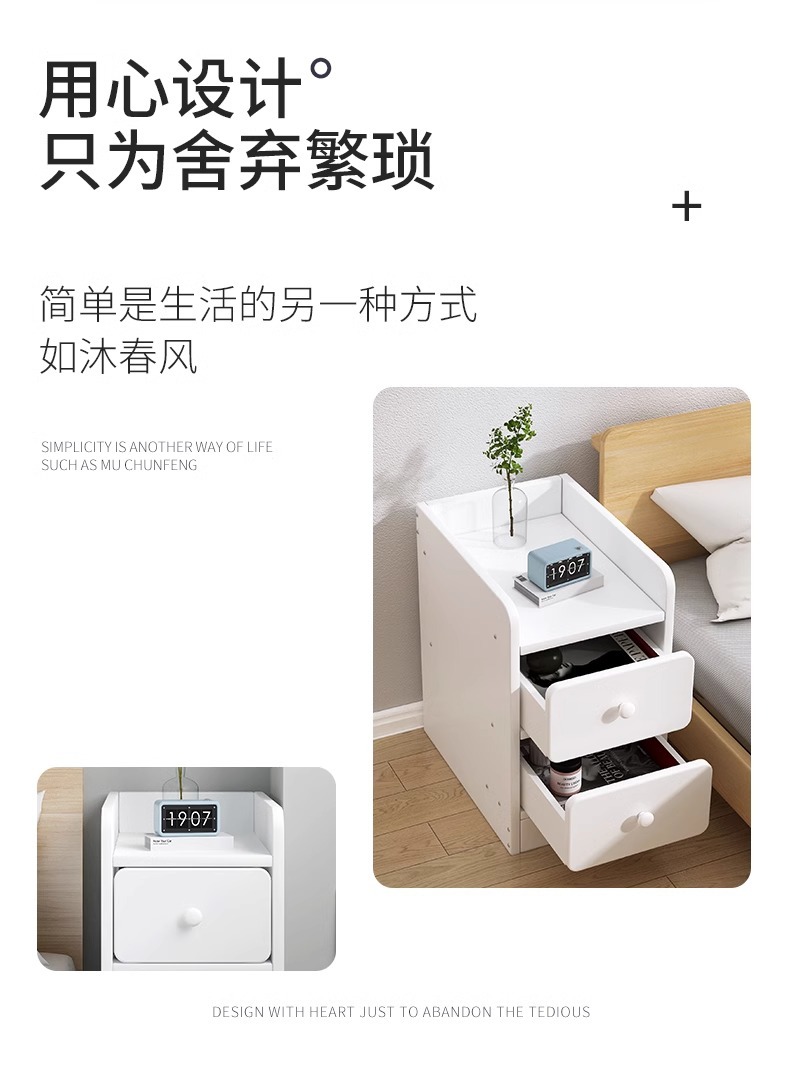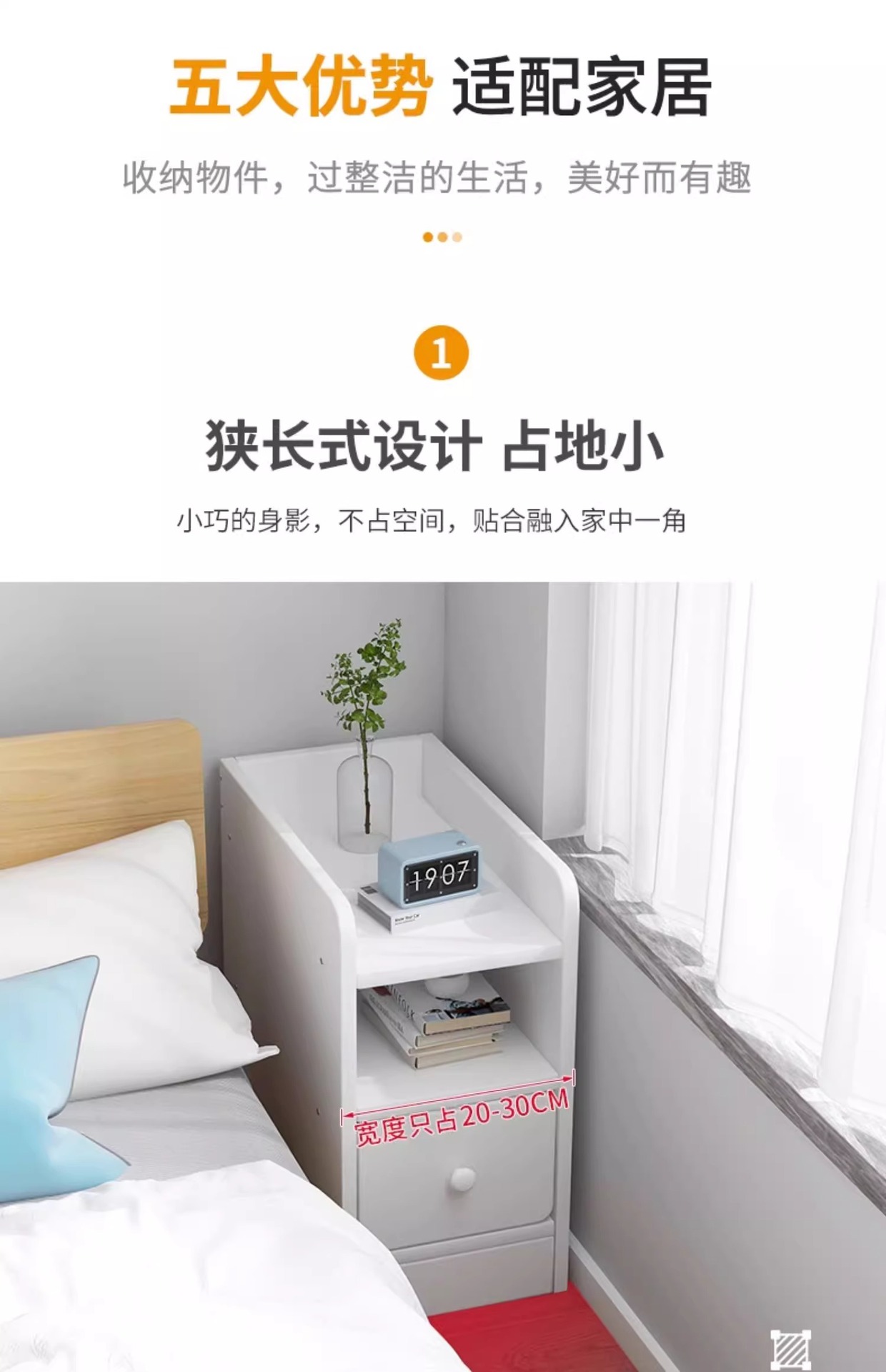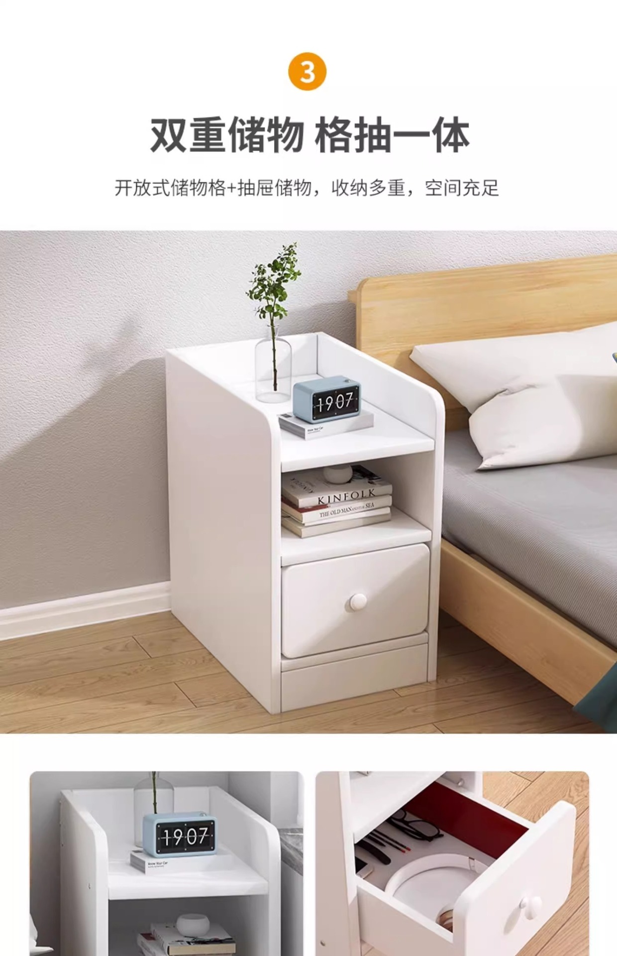 床头柜它的实用性更是不容小觑。当夜幕降临,我们结束了一天的疲惫,躺在床上,伸手可及的床头柜就成了最方便的收纳之所。上层的开放式搁架可以放置我们正在阅读的书籍、眼镜,方便我们随时拿起沉浸于知识的世界或者看清周围的环境。抽屉里可以收纳一些重要的小物件,比如常用药品,在偶尔身体不适的夜晚能迅速找到缓解不适的药物;还有那些珍贵的首饰,在我们入睡时可以安心地将它们放置其中。