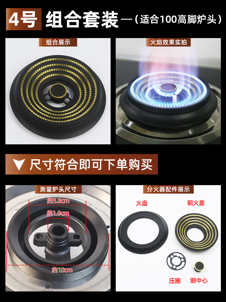가스 스토브 화재 커버 액세서리 Daquan 천연 액화 가스 스토브 헤드 스토브 가스 스토브 스플릿맨 유니버설 순수 구리 화재 코어스토어 가기